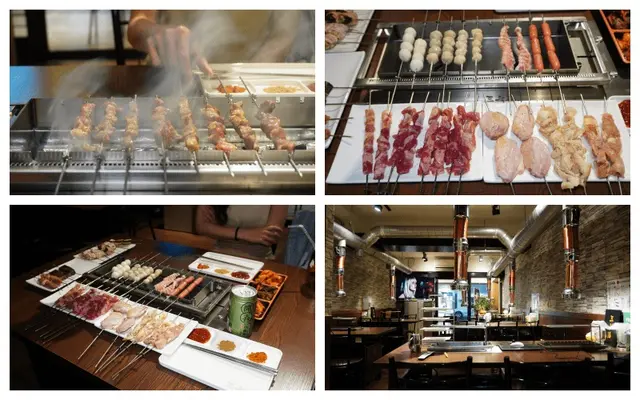 有跟我一樣喜歡吃燒肉嗎?大部分燒肉都需要自己在桌邊料理, 但是想跟朋友聊天就會比較手忙腳亂三六苑炭火燒肉烤串, 引進台北少見自動串烤設備烤串不用動手, 而且非常的有趣重點是串烤均一價49元, 嘗鮮也可以平價享受三六苑老闆本身在日本住了40幾年, 回到臺灣因為想念日本的燒肉, 所以開了這家餐廳原本是提供單純的日式燒肉模式, 後來想說來點不一樣創新感覺, 把流行好玩元素融入在傳統當中, 店內就跟日本小型燒肉店一樣的氛圍總共只有5張桌子, 一個精緻型路線,加上只有晚餐宵夜時段營業, 有提早安排一定要訂位喔店家規劃的排煙機,抽風能力非常好,吃完幾乎是不會有油煙味現在店內兩種不同的商品分別是均一價49元的串烤原本燒肉menu 也有完整供應, 推薦可以點傳統的燒肉加上串烤, 先享用串烤, 然後加上烤網享用傳統烤肉, 豐富菜單, 滿足聚會各種不同需求~均一價串烤部分, 除了肉類是用一串一串計算, 蔬菜火鍋料甚至會直接給兩串份量, 真的非常霸氣一次上桌看起來就吃得很豐富, 很適合朋友間的聚會或者是一群人享用 特別加大的桌子, 就算點很多也不會有擁擠感也有提供層架用來放食材, 馬上就來帶大家看看這厲害的日式全自動烤串吧 ~先送上店家手做泡菜還有新鮮包肉生菜, 可以作為燒肉搭配, 所提供的泡菜水準真的讓我很驚豔尤其是霸氣的小黃瓜加上刀工切過口感很特別, 水嫩又很入味~羊肉 | 牛肋條 | 牛肉串烤主打的肉品是牛肉跟羊肉標榜採用日式燒肉等級肉品絕對比一般串烤店來的高級, 個人很推薦牛肋條, 燒肉串烤Q彈多汁, 羊肉部位選擇也很不錯, 完全沒有羊騷味用看的就可以感受到肉品新鮮~豬肉 | 松阪豬 | 豬血糕豬肉部分基本豬肉還有松阪豬, 各有不同特色,淡粉紅色的松阪豬第一次在串燒裡看到讓人期待, 豬血糕一份是直接給兩支, 融入臺式風格, 直接炭烤美味更加分雞翅 | 雞皮 | 雞肉雞肉部分大推雞皮, 完全不會油膩, 口感還Q彈帶有點脆度, 雞翅用自動烤爐烤起來比較不會烤焦大約10分鐘就可以完成, 完全凸顯用自動旋轉烤爐烤肉的優點 培根青蔥 | 培根金針菇在外面串燒店都吃不到這麼真材實料吧, 採用脂肪比例平均的培根, 青蔥跟金針菇出水後口感軟嫩,搭配上有點焦脆度的培根非常有層次~蔬菜 | 櫛瓜 兩串 講到烤串怎麼可以少了櫛瓜呢 獨特的風味經過輕調味,可以品嘗到比較偏原味的口感多汁美味~ 貢丸 | 花枝丸 | 鑫鑫腸 | 麻糬丸子 兩串副菜部分49元一份, 都會提供2到3串貢丸, 花枝丸的品質完全不輸外面竄串燒專賣, 自動烤爐可以把花枝丸, 烤到跟外面賣的幾乎一樣金黃色, 麻糬丸子配上煉乳,口感跟在日本街頭吃到一模一樣, 一定要試看看~自動烤串爐有分大爐跟小爐, 2個人的爐子一次就能烤至少10串左右整個用餐速度我覺得還蠻剛好, 可以舒服聊天, 但是一直都有東西可以吃~ 特別設計的盤子有三種不同醬料格, 串烤本身有經過調味, 師傅會按照不同種類的特色來搭配調味料, 也可以按照自己喜好來搭配不同桌上的醬料 飲料今天選擇了柚子沙瓦,還有個人最近很喜歡的無糖開喜烏龍茶, 配燒肉絕對是有去膩效果, 如果有開車想要有點喝酒感, 無酒精沙瓦個人覺得也蠻不錯和外面很多類似的店很不一樣三六苑堅持使用炭火直燒, 而不是使用瓦斯或者是電, 炭香味十足的燒肉才是正統日本燒肉, 燒肉用電, 總會覺得少了一味 烤架上方有一個可以保溫的架子如果速度太快來不及吃, 架在上面有保溫效果還蠻貼心的 麻糬丸子QQ的很可愛一般燒肉吃完之後經典的日式甜點經過自動串烤, 完全不會擔心燒焦問題~ 牛肋條 除了串燒外, 這次也有點了燒肉部分牛肉條在享用完串燒後附上烤網, 本身就很喜歡在燒肉的時候點牛肉條肉品修的很完美, 油脂比例剛好吃起來軟嫩又帶有足夠的風味~把正統的日式燒肉融入在創新自動串烤當中如果有人去日本燒肉店吃過燒肉一定會很熟悉三六苑菜單安排方式, 可以單點也可以是幾種肉品搭配, 原本老闆就是想讓吃燒肉也是可以很簡單現在加入串燒菜單, 均一價49更顯得平易近人而且也讓燒肉體驗變得非常有趣, 營業到宵夜時段, 晚上想要跟朋友找個地方吃飯聊天很推薦可以來體驗看看喔…查看更多