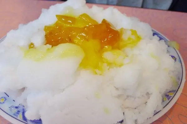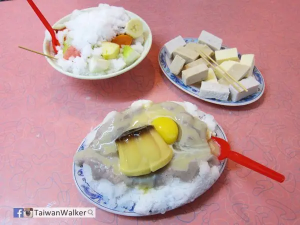 現在好像很少冰店在賣月見冰,記得小時候家旁邊的老冰店才有在賣,隨著世代變遷,古早味月見冰似乎已不復見,取而代之的許多水果或是造型華麗的冰品,月見冰似乎只剩下南部的老冰店才有,某日在FB上到有人分享月見冰,而且是在板橋三豐芋冰城!吃月見冰不用下南部囉!三豐芋冰城是板橋相當老字號的冰店,至今已經超過40年了,面對各式外國冰品、網美冰店的夾擊,完全沒在怕的!三豐芋冰城仍舊堅持古早味做法,價格有也超親民,google一千多則拿下4.1星,真的很強!三豐芋冰城斑駁的油漆招牌,充滿歷史感的製冰機、老冰果櫃及櫃檯,四十年走來幾乎沒變過,也是不少板橋人小時候的記憶內用先找座位再點冰唷,桌位數不多,很多人都是外帶,天氣雖然還是涼涼的,但店內還是客滿,翻桌率算快的,吃完冰就閃人,等一下下就有位置了三豐芋冰城價目表價目表還是用手寫的充滿濃濃歷史感!三豐芋冰城的價位超親民,現在吃冰動不動就要破百,來這裡可以吃兩盤,最貴的水果冰也只要80元!三豐芋冰城的冰磚也是很有名,不少人都是買回家冰著慢慢吃板橋古早味冰店/古早味月見冰雞蛋牛奶冰,也就是月見冰,今天就是為了這個來的!現在北部能吃到月見冰的冰店應該區指可數,一大盤只要40元,煉乳也沒在小氣,豪氣的淋了一大堆,中間再放上一顆誘人的生蛋黃!相信現在很多年輕人應該都很少吃過,月見冰也有獨特的吃法,吃之前先把外圍的冰往蛋黃處靠攏,堆成像是一個小火山的形狀,這樣蛋黃就不會到處亂流,也比較好拌勻,再來就可以切開蛋黃跟冰拌在一起蛋黃接觸底下的雪冰會慢慢凝結成膏狀型態,下面的是充滿古早味的雪冰,,外表有如白雪,口感綿綿鬆鬆,單吃時類似香蕉油的甜味,但這裡不是用香蕉油而是用砂糖、水、香檳(一種香料)製作的,香氣相當清雅,蛋黃戳破混著煉乳冰一起吃,口感還有幾分相似雞蛋布丁,超級懷念的!北部還有在賣月見冰的冰店應該五根手指數得出來吧,目前google大概北部只搜尋的到三豐芋冰城有賣,你也喜歡吃月見冰嗎?找時間來三豐芋冰城報到吧!…查看更多