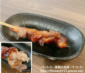 下班就是想好好放鬆一下,所以二三好友吃好吃喝好喝是一種簡單的幸福 今天分享"捷運大坪林站"的"六食酒串",離捷運站超近3分鐘內會到呢~ 這家店名很有趣名字也蘊含了「六十九串」的諧音 希望每位客人都能無忌諱地品味串燒與美酒的美好滋味((讚啦  從捷運大坪林站走過快,就可以看到斗大的招牌,我個人覺得還滿好找的呢!  到了門口,可以感受到滿滿的日式風格 話說"六食酒串"老闆背景源自科技業,並擁有長達十年的餐飲學習經驗 老闆希望以平價的方式提供美食及各式酒類,同時帶給大家日式居酒屋的氛圍  裡面的位置看起來還滿多,但其實到了用餐時間還是滿坐,所以來吃的朋友先訂位會比較穩當可以吃到喔! 這裡有一個大螢幕,所以在這裡邊吃邊看球賽感覺也滿爽的((很享受^^  老闆是個科技人出生的,所以可以看到桌上也QRCODE,可以直接掃QRCODE點餐,這樣子超方便的 而且討論點什麼菜或是聊天,也不會因為店員在旁邊就被打斷  裡面也有許多不同的酒料,但它們家最有讚的就是現拉的"麒麟生啤酒" 當然也有沒有酒精的飲料,所以無論有喝酒沒喝酒都可以喝的很開心  ✬ 麒麟生啤酒 ✬ 嘻嘻!當天天氣還熱的,老闆很了解,所以先上了啤酒,讓人喝下去整個超清涼的 麒麟一番搾生啤酒喝起來就是超順口啤酒,有啤酒花的香氣,但沒有太多啤酒的苦味 一口咬下去一整個大大消暑,爽快阿^^  ✬ 柳葉魚/5隻 ✬ 一咬下去裡面有滿滿的魚卵,而且整個骨頭跟魚身都酥酥的,整尾連同骨頭一起吃掉 完全可以吃到魚的香氣,如果想要更加有味道可以沾旁邊的胡椒  ✬ 豆皮 69/2串 ✬ 這是店家大推的,但我個人好愛,我覺得超好吃的啦! 上面是佐上店家特調的燒烤醬,吃起來鹹鹹甜甜的,讓人不小心一口接一口的吃完  ✬ 三層豬肉串 95/2串 ✬ 這烤的油亮油亮的,而且雖然是三層肉,但吃起來完全不會油膩 而且是屬於Q彈好吃的三層肉,而且這調味也非常的香,讓人真的會不小心一口接一口呢~  ✬ 烤飯糰 69/3顆 ✬ 這烤飯糰超可愛的,小小一顆,一盤有3小顆,上面灑上海苔 外表烤的焦焦脆脆的,一咬下去有咔吱咔吱的聲音 吃起來是很有口感,但不會太硬,裡面有包一塊小起士,有一種越嚼越香的口感,讓整個烤飯糰吃起來很有層次  ✬ 深海大魷魚 125/1隻 ✬ 這一隻一上桌,我有一點嚇到,真的超大一隻 可以看到這魷魚是多汁的,吃起來很鮮甜,而且這魷魚肉質很Q彈好吃,這搭配啤酒超合的~  ✬ 牛五花包蝦 60/串 ✬ 牛五花肉捲+生洋蔥,我好喜歡這爽口契合的滋味。 牛五花包金針菇吃起來讓牛肉捲添加溼潤飽滿的口感。  ✬ 炙烤鮭魚腹 ✬ 最後給大家看最好吃,所以我放在壓軸,可以看到這鮭魚腹超厚,讓人看整個覺得超height 可以看到這鮭魚腹很多汁,烤的熟度十分剛好,可以感受師父的燒烤功力很強呢  旁邊是有放胡椒及檸檬片,可以加一些檸檬汁的把鮭魚的香氣提出來 但我個人最推加店家放的芥末椒鹽,加上整個大大推升鮭魚的香氣 而且這肉質很細緻滑嫩,好好吃喔!愛吃魚的朋友千萬不可以錯過  下班這樣子來喝一杯,吃吃好吃的日式串燒,也是人生一大享受 大家有機會來捷運大坪林站,不要錯過"六食酒串"  本文皆為茉莉小花親自試吃過後的體驗心得(非商業性質)僅供參考。產品成分及功效說明,引用商品或官網(含粉絲團)所載,不等於宣稱具有療效,每個人口味不同,實際效果依每個人體驗為主查看更多