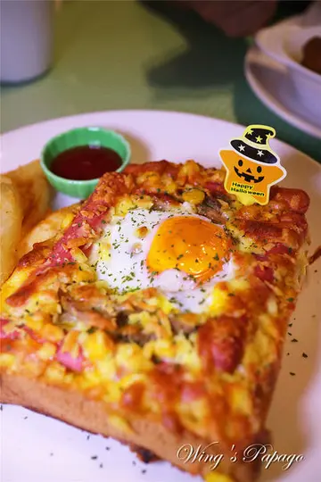 趁著難得不用顧小孩的休假日,來到了板橋一間很可愛的早午餐店【初鹿小站二店】,店內許多餐點食材如土司、鬆餅、奶茶等都是以初鹿鮮奶調配而成,還有每日早上新鮮手作的媽鈴吉沙拉,跟著wing一起來享用他們家可口的鮮奶早午餐吧! 【初鹿小站二店】近捷運新埔站1號出口,步行約4分鐘左右,位在巷子內的乳牛圖案店面其實還蠻吸睛的。店內除了靠近門口的兩區用餐空間外,走進內部還有一大區寬敞座位區,雖然座位不少,不過用餐尖峰時間客滿就要抽號碼牌候位囉!沙發區看來好舒適喔!可以坐到4人,好想懶洋洋的窩在沙發上享用餐點喔! 感覺很放鬆耶! 店內推廣台灣在地天然素材,還有提供百香果及洛神花原汁的販售。 不收服務費,水及餐具就自己來吧!也有擺放雜誌及報紙可供借閱。來看看menu,有鮮奶厚片、鮮奶三明治、牧場拚盤、鮮奶鬆餅、厚押帕尼尼、濃湯、小點心、千層麵、風味飯,飲料則有牧場鮮奶、鮮奶茶、咖啡、調味拿鐵、水果茶、單品紅茶等,點主餐皆可加價升級套餐,菜單上還細心的標出蛋奶素及奶素標誌。每人低消89元,用餐限時90分鐘,不過沒客滿就不會限時喔!餐點陸續送上桌了,擺滿一桌有沒有很豐盛啊! 【小兔子拚盤】NT139兔子吃草,所以這份薯餅漢堡是沒有肉的蛋奶素漢堡XD~除了薯餅起士漢堡外,還附上馬鈴薯生菜沙拉、薯條、滑蛋。 疊的高高的薯餅起士漢堡因應萬聖節還插上萬聖節圖案竹籤,整份由起司片、薯餅、苜蓿芽、生菜加入蕃茄醬堆疊而成。堡皮用的是燕麥堡,包覆的生菜鮮脆,加上鹹香的起司及大塊外酥內鬆軟的薯餅,讓整份漢堡口味上更加豐富,豪邁的一口咬下,可以感受多層次的清爽美味。薯條調味適中,炸的外層酥脆內鬆軟,不用沾蕃茄醬吃就很可口。滑嫩的炒蛋香滑順口,沒有蛋腥味。店家每天早上自製的馬鈴薯沙拉口感綿密香濃,生菜沙拉另加入苜蓿芽及葡萄乾,嚐來清爽香甜。 【南瓜濃湯】今日的濃湯也和萬聖節有關,是南瓜濃湯喔~南瓜湯非常濃郁,充滿綿密香甜的南瓜味,微涼的天喝完好滿足喔! 【牧場鮮奶茶】【牧場鮮奶咖啡】主餐+39元可以選鮮奶茶或奶酪,選了牧場鮮奶茶,用很可愛的乳牛杯裝,另一杯飲料則點了牧場鮮奶咖啡,飲料升級單點飲品可折15元。 鮮奶茶的紅茶用的是鶴岡紅茶,搭配初鹿鮮奶是絕配,份量還蠻大一杯,茶香芳醇,充滿香濃的牛奶味,是店內人氣飲品喔!牧場鮮奶咖啡一樣添加香濃的初鹿牧場鮮奶,是鮮奶味較濃的咖啡。【媽鈴吉嫩蛋厚押帕尼尼】NT99媽鈴吉其實就是馬鈴薯的台語啦XD~其實本來想點三明治,但看到別桌點的好大份,於是改點厚押帕尼尼,沒想到切成對半的帕尼尼份量也不小(笑)~上頭還有萬聖節小鬼及蝙蝠開心對我笑呢! 看看這內饀的馬鈴薯沙拉及厚厚的嫩蛋都快滿出來了!加入生菜絲,配上外層烤的酥脆的帕尼尼,好吃無法擋,我好喜歡他們家馬鈴薯沙拉的清爽香甜味喔! 【三杯雞風味飯】NT168想吃飯的朋友這兒11:00過後也有供應各種口味風味飯喔!點了三杯雞口味,風味飯均附滷蛋、毛豆及豆干三種配菜。這三杯雞可是店內自煮的,不是使用微波調理包喔!整盤滿滿的雞腿肉,嚐來嫩口入味,三杯醬汁帶點辣度,好下飯啊! 【南瓜吐司披薩】萬聖節限定到訪這天接近萬聖節,所以幸運吃到店家特製的南瓜吐司披薩!附上薯條及蕃茄醬。 南瓜吐司披薩使用了厚片鮮奶土司,舖上披薩饀料如起司、玉米粒、野菇等,最特別的是四周放上小熱狗,中間還打顆蛋黃哥更加誘人!切開品嚐,內部還包覆大量菇類,滑嫩的蛋液更增添了比薩滑順口感,加上鹹香的焗烤起司,整體嚐來酥脆可口,很有創意又好吃的土司披薩。最後再來看他們家提供裝水的紙杯是乳牛圖案耶,好可愛啊!整個都少女心了起來XDD~想看更多美食記錄請見wing的自助行腳趴趴GO! http://wing1209.pixnet.net/blog…查看更多