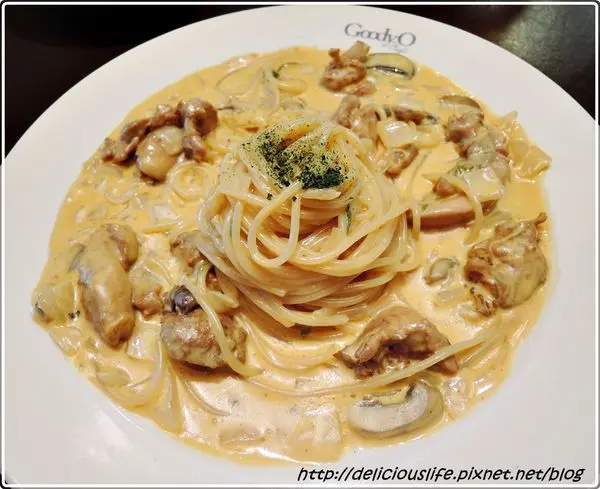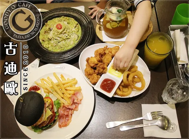 身邊不少朋友跟家人都住在永和永和跟新莊比起來 美食真的多很多捏光是一條永貞路 我看我可以吃一整年了吧XD這家古迪歐 Goody.O cafe 是表弟妹推薦給我跟老公剛好要到永和處理事情 決定先來吃飽囉店裡空間比我預期的小 而且平日中午生意已經很不錯聽說假日都是客滿 一定要訂位啊老闆現在都要搶看菜單 還會煞有其事的比啊比好像真的知道自己想吃甚麼捏從出生45天開始跟我到處吃吃喝喝老闆算是個好食伴 從只會在推車上不動的嬰兒進階到開始坐餐椅 現在則是吃飽就想下來走走雖然吃飯越來越不輕鬆 但我還是愛帶著她一起謝謝老闆讓我陪伴著 媽媽會永遠記得這時期的美好不是個愛吃的孩子 但看到吃還是反應很熱烈XD套餐-凱薩沙拉套餐有凱薩沙拉、海鹽薯條、現炸洋蔥圈、現炸洋芋片(四選一)+飲料(碳酸飲料可無限續)沙拉份量不算很小 味道清爽開胃 我個人挺喜歡招牌炸雞(180元)裹了薄薄的粉下去炸外層超酥脆 咬下去肉汁馬上噴出來單吃美味 搭配旁邊的蜂蜜芥末醬也不錯我個人覺得非常好吃 老公覺得好吃但嫌小小貴XD酸辣泰泰(單點280元 套餐390元)這裡加麵不加價 很適合老公這種大食量頗有辣度的一款麵吃來酸辣味足 很有泰式風味旁邊的牛肉片份量也不少 肉片小有厚度口感不錯喜歡吃辣的朋友應該會喜歡喔舒芙蕾海鮮燉飯(單點280元)聽說這是店裡的招牌 點來跟嬰兒分食而且海鮮燉飯本來就有配沙拉囉沙拉也好吃 有水果有蔬菜 蠻豐富的最上層真的很舒芙蕾就是打發的蛋白下去烤吃起來鬆鬆軟軟的(因為擔心不夠熟 就沒有讓嬰兒吃)下面就是燉飯 其實看起來份量不多但我跟嬰兒分食 其實是OK燉飯的鮮味很足 有洋蔥、蟹肉、花枝、蛤蜊等配料嬰兒挺喜歡的 我也覺得蠻好吃喔這天吃完加一成約900多元價位上不是預期的平價 但餐點本身真的算好吃不管是麵、飯 表現都讓人喜歡炸雞我個人覺得好好吃 雖然不便宜 但好吃就很開心店裡環境稍舊 而且有個我不愛的味道(我都統稱為蟑螂味)算是比較可惜的地方 如果撇開環境 我個人對餐點真的蠻推薦有機會再訪 會考慮試試很多人推薦的早午餐…查看更多