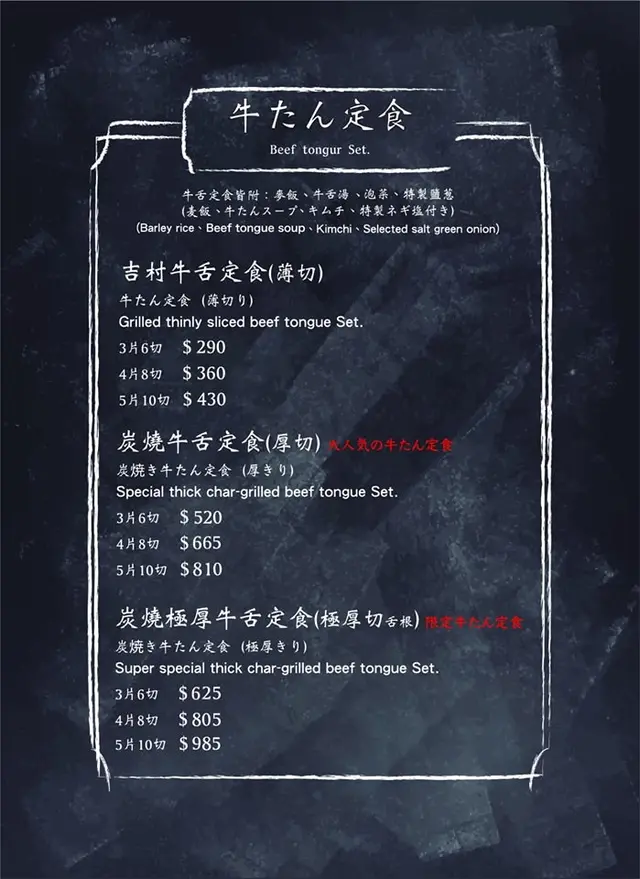 吉村·牛舌 (新北/基隆) 網址: https://s.openrice.com/cHRSmG2m5i700 地址: 新北/基隆板橋區公館街110號