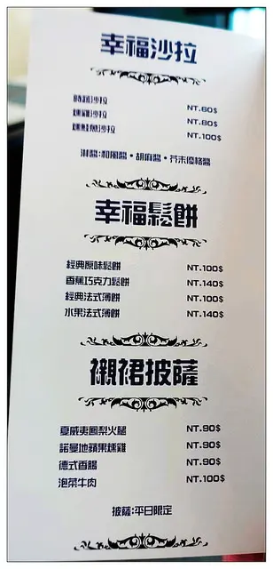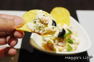 當耶誕鐘聲響起,又是和家人或朋友歡聚的時刻,滿滿的喜悅和祝福在這一刻大聲的說出,溫暖彼此的心。在平安夜的這一天我也約了旅遊的好伙伴們,一起來板橋【幸福這裡小酒館】,聊聊近況也討論一下我們明年的旅遊計劃。【幸福這裡小酒館】Happlness Here,位在板橋的觀光街,從板橋火車站走過來約莫十分鐘,看地名會以為是很熱鬧的地方,但實際走過來發現是很安靜的小街道,旁邊有一座溫水游泳池,街上也比較多是小型工廠,除了車輛外路上行人不多,很難想像這裡會有餐廳,不過走著走著看到燈亮著的地方有種柳暗花明又一村的感覺,我終於找到[幸福]了!感覺上這棟還蠻新的大樓,或許會為這裡帶來些不同的生氣,而在這樣的環境中也突顯店家的獨特性,若不是為了【幸福這裡小酒館】,我還真不會來到這裡呢!不過一靠近門口就看到諾大寬敞的空間和開放式的廚房廚房裡的一舉一動顧客也都能看得一清二楚高挑的空間配上漂亮有設計感的燈飾,不止一樓,空中閣樓也有座位喲!簡單的書報櫃有報紙雜誌可翻閱,還有幾樣主人的收藏品早上這裡以早午餐和下午茶為主,到了晚上搖身一變為小酒館,照顧到每個不同時段的朋友。目前的營業時間,未來會試營運狀況再做調整每個桌上都有應景的聖誕樹,小巧可愛12月開幕還在試營運的階段,晚間的菜單還在調整,只有簡單幾種選擇,但店長表示到了1月份會推出更完整的菜單,讓來訪的食客能有更多選擇。飲料的部份有酒精類和非酒精類,未來還會推出更多種類飲品。(未成年請勿飲酒/請勿酒駕)是歡樂的節日自然要來點小酒,我們選擇了低酒精飲品德國的「庫柏格水果啤酒」,酒精濃度在4~4.5間,喝起來水果的味道較濃,酒精的味道自然是不明顯的,很適合女性飲用。(未成年請勿飲酒/請勿酒駕)另外選了「百忙抽空氣泡飲」,以百香果和芒果調味的水果飲品,蠻大一杯才90元,划算! 「辣炒蘑菇」100元,搭配紅椒、洋蔥、花椰菜等配料大火快炒,滿滿的蒜香氣味撲鼻,加入了些許孜然提味,還有適中的辣度,十足的小酒館菜色。 「辣炒透抽」130元,軟嫩又帶有Q彈的新鮮透抽,在大火快炒下鎖住鮮味,同樣有孜然入味,而辣味明顯又比蘑菇來得嗆,後來就把這盤好料讓給很能吃辣的蕙兒解決! 不過這透抽的味道好,還是忍不住讓我塞了幾塊進嘴裡 「經典美式辣雞翅」180元,搭配特製辣醬,話說原本不吃雞翅的瑪姬,在嚐過美味的美式辣雞翅後,食髓知味,現在只要看到美式辣雞翅幾乎必點。 香噴噴的辣雞翅烤得好生火,滴上幾滴新鮮檸檬汁後大口咬下,皮薄肉嫩香味滿口,我更喜歡那檸檬的微微酸度,吃起來味道清爽不油膩。 「經典義式海陸Pizza」180元,裡面的海鮮料有鮮蝦、透抽,加上一些蔬菜和迷人的香濃起司就很美味。 這Pizza的餅皮和一般吃到的不太一樣,是比較像墨西哥薄餅的餅皮,二層疊在一起支撐著上頭滿滿食材的重量,味道不錯! 「百香鮮橙鮭魚義大利麵」220元,裡面的主角鮭魚散佈在其中,加入了洋蔥、紅椒、花椰菜和蕃茄,賣相不差。你有吃過帶有甜味的義大利麵嗎?這道百香鮮橙鮭魚義大利麵的味道就是如此,吃到香甜的百香果和柳橙的味道,口味獨特但不會奇怪,口感上用水果入味還蠻清爽的,該有的鮭魚鮮味和香料的味道都有出來,是道有豐富層次口感的義大利麵。 麵條軟硬適中,醬汁都有入到裡面去 薯條熱熱上桌好適合我們邊聊邊吃,若不是顧及身材,很想通通吃下肚。 「西班牙海鮮飯」250元,以小鐵鍋盛裝,美麗的服務小姐端上來,非常強調它很燙,要我們多加小心。 上面的料有蛤蜊、白蝦、透抽、淡菜和干貝,滿到只能從縫隙中看到底下的飯XDDD 這樣的價位能放上一顆淡菜算是高CP值,海鮮強調的就是新鮮,新鮮就一定好吃! 想不到還有干貝,干貝的肉鮮甜有彈性,又不會不好咬,二三下就吞下肚啦! 底下的飯以薑黃入味,味道適中,米粒的軟硬口感也剛剛好「俄羅斯沙拉」這道沒有在菜單裡,或許一月份的菜單會看到它出現。裡面以紅蘿蔔和馬鈴薯丁,特別加上德式香腸,旁邊在襯上洋芋片,雖然小小一碟,但看得出用心在製作。 洋芋片搭著一起吃還蠻新奇,不過要快快吃,洋芋片才不會和空氣接觸太久軟掉,脆脆的口感會比較好。 喜歡這種小酒館的料理和氣氛,非常適合三五好友聚在一起聊天吃美食,尤其像我們這團聚在一起就很High!來【幸福這裡】就能找到滿意的美食喲!…查看更多