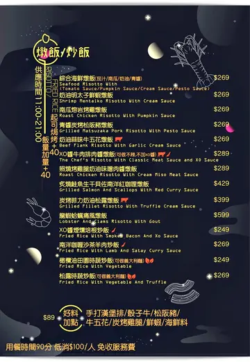 這天來到林口用餐出發前先打電話問店家好停車嗎店家掛保證的好停車實際到現場也是很方便停車呢 店家外頭是有點工業風的裝飾走進去反差非常大是非常高雅的歐式宮廷風 橘色風格為基礎搭配豪華優雅的吊燈走進去門口就有狗狗的窩這間店是一間很寵物友善的店喔 店家餐點非常多元從早午餐、義大利麵、燉飯、漢堡和披薩都有另外還有很多選擇的小菜也可以加價升級成套餐店家還推出二人或四人套餐更划算喔 今天我們三個人用餐就選了一個雙人套餐跟單人套餐雙人套餐可以選擇沙拉跟開胃菜再加上兩份主餐及兩杯飲料店家一個漏漏長的餐點立馬就吸引了我目光->炙燒鮭魚甜蝦干貝松露牛肝菌痛風燉飯感覺就是一個非常厲害的燉飯啊 兩人套餐可以選擇凱薩烤雞、鮮蝦培根、炙燒牛肉沙拉我們選擇了炙燒牛肉沙拉沙拉裡有滿滿的生菜外還有麵包丁、牛番茄、牛五花肉片份量挺大的搭配胡麻醬的沙拉就是王道啦醬料用米奇造型盤裝盛非常可愛喔 開胃菜有起司奶醬薯條、奶油蟹肉麵包、蒜味橄欖油炒食蔬松露炒野菇、蒜香炸雞、炙燒牛五花奶油墨西哥辣椒捲六選一考慮了好久最後選擇了最清爽的蒜味橄欖油炒食蔬裡面有綠花椰菜、香菇、玉米筍、四季豆只用橄欖油和大蒜泥拌炒就非常好吃呢 花生醬培根牛肉堡一向是花生醬控的老公果真點了這道餐上桌的餐點用可愛的鐵網裝盛著薯條薯條外皮香酥內餡綿密半溶的起司已經明顯露出漢堡底部由生菜、紫洋蔥、酸黃瓜、番茄、牛肉片和起司堆疊而成約莫有15公分高度我一口還真咬不下店家很貼心附了塑膠手套讓人可以大膽用手夾起牛肉片約莫1.5公分的厚度吃起來是很扎實的口感非常的有飽足感呢 炙燒鮭魚甜蝦干貝松露牛肝菌痛風燉飯這道餐點一上桌就覺得真的有痛風到兩片炙燒過的鮭魚、兩片甜蝦、兩隻天使大紅蝦還有干貝跟魚卵最上面則是有生蛋黃超高膽固醇食物一次到齊啦他家的燉飯偏硬的口感吃起來滿有松露香還不時吃到牛肝菌喔真是好奢華的一道料理啊 松露披薩長相不起眼不過卻超好吃的啦餅皮是薄片披薩尾端的餅皮吃起來像餅乾酥脆的口感一拿起來就牽絲滿滿的松露真是好好食啊 奇異果蘋果汁整杯滿滿的奇異果汁粒還有有蘋果汁的中和喝起略帶酸味 新鮮水果茶以藍莓花果粒茶為基底加入了奇異果、蘋果丁、柳橙、鳳梨糖漿喝起來非常的濃郁充滿水果的香氣 OREA巧克力奶昔這杯造型真是一看就讓人喜歡上面撒上了巧克力粉另外還有OREA餅乾碎片跟白色棉花糖濃郁的奶昔讓人一喝就好巧克力喔 馬達加斯香草千層以香草千層為基底上面淋上了焦糖再經過火烤上面微甜搭配千層香草綿密的口感還蠻好吃的 提拉米蘇奶酒千層這個千層真是讓我也醉了淋上了巧克力醬和椹果粒看起來好又誘人上面的巧克力脆片好好吃整個搭起來就是又香又濃的巧克力千層吃完真是讓人筍指回味呢 美食指數***氣氛指數****cp值指數****再訪指數*** 地址: 24448新北市林口區文化三路一段390-1號電話: 02 2600 5881開放時間:10:00–22:00 *歡慶51勞動節優惠*5/1當天全天憑工作證可享第二套套餐89折*歡慶母親節活動*5/9.10 優先訂位一天前20組即招待媽媽酥炸拼盤一份(兩天共40組) Clairegarden…查看更多