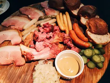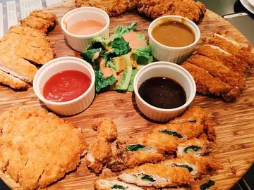 為了慶祝生日,約了幾個朋友一起來吃幾年前就有吃過一次了,但不管吃幾次總是被他的超大份量嚇傻。今天要介紹的《抱飲抱食》這家店位於一個比較隱密的地方,若要搭捷運的話可以選擇搭到小碧潭站2號出口走下來即可看到。他隱匿在住宅裡面,但門口蠻好認的。他有戶外的座位,上面還有天頂,所以下雨天也不怕淋濕,在外面喝啤酒慶祝感覺很HIGH!整體的裝潢蠻簡單的,一樓空間比較小,二樓好像蠻大的,但因為當天是平日,所以就沒什麼人,我們因為一群人所以幾乎都變包場了,哈哈。菜單的部分,有日式以及徳式的料理,但是來這邊第一個一定要點綜合拼盤啊!大家一起吃的話其實非常的經濟實惠又美觀啊!他這邊也有套餐,我們當初點了綜合拼盤,每個人加150元就可以有湯品、甜點以及飲料。飲料部分可以折抵50元換購其他的飲品。而這邊也有牛排,牛排的份量也無敵大,有看到別桌的點,真的是色香味俱全,看了別人點自己都想吃了!而且因為大份量牛排吃的速度可能會比不上冷的速度,所以店員都會來問需不需要幫你在熱一下,很貼心。招牌沙拉 $280一看就知道份量十足,那個碗真的是無!敵!大!招牌沙拉是淋上百香果醬,裡面有美生菜、番茄、蘋果丁、葡萄乾。雖然覺得內容物不太豐富,但這個份量也是瑕不掩瑜啦!各位觀眾,重頭戲來啦!!家庭豬排綜合大拼盤 $1090這個份量足夠讓你瞠目結舌了吧!他這個上面每一種口味都有,若是無法分捨哪一個口味想吃,這個真的是一個非常好的選擇!其中大推起司里肌豬排,滿滿的牽絲啊!!(先流口水)(因為我們去的時候飯已經沒了,所以是給麵包,這點有點可惜)家庭綜合大拼盤 $1090喜歡吃肉的朋友這個絕對不能錯過!而且中間的豬腳,就是很正統的德式豬腳,外皮非常的酥脆,(若是要點豬腳建議提前預約,因為現場烤需要等候30分鐘,因為當初定位她有先詢問,所以一下子就上菜啦!)他給的麵包一定要吃!中間有參雜著核桃,又酥酥脆脆的充滿核桃香氣,真的很棒!而且典這一盤不僅僅吃到豬腳,還有各種香腸(大小隨你選擇)以及後火腿。大里肌起司豬排 $200因為我們9個人實在有點吃不過癮,於是又再多叫了兩盤豬排,其中一定要點的就是這個起司里肌豬排了!它裡面的起司份量非常十足,而且真正會牽絲啊啊啊!喜歡起司的朋友一定要點這個!大里肌豬排 $170他們的豬排都很多汁,如果不知道要抉擇甚麼不如就來點經典的口味吧!整理的裝潢很間約,很適合三五好友一起來聚餐,份量又十足,而且他的拼盤絕對足以增添你們的話題性!一個拼盤4-5個人吃都綽綽有餘呢!我們9個人這樣平均下來加上服務費,一個人才390元,其實真的非常划算!抱飲抱食地址 : 新北市231新北市新店區中央三街5號電話 : 02-2218-2018捷運 : 小碧潭站2號出口出來即可看到。喜歡瘋狂吃肉的朋友絕對激推!!!…查看更多