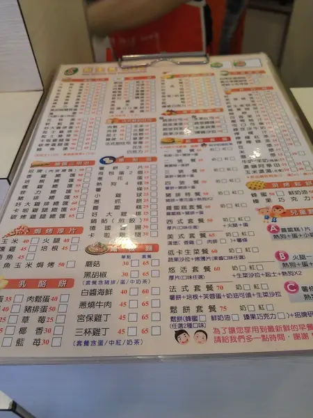 這間連鎖早餐店在我家附近有開了兩家,這家位在延吉街裡面而兩間的店員完完全全就是可以分成年輕姊妹組和歐巴桑嘴雜組歐巴桑嘴雜組真的很嘴雜!每次在不遠處就能聽到她們嘴雜的聲音!!!重點是之前我高中時去上暑輔,其中一個歐巴桑還笑說:那不是白痴才去的嗎 經過那次之後我就沒有再去光顧過了硍!而今天所要介紹的這家年輕姊妹組的店員們態度都超級好收妳的錢還用雙手捧著,不時臉上掛著笑容還頻頻道謝!⊕店面照我都很早就出門準備家人的早餐,由於這家是位在延吉街市場裡頭,附近都會擺攤子是說前面那堆垃圾是早上有清潔隊會來整理⊕內用菜單每一張都護背起來,這樣用白板筆劃記又可以擦掉,不浪費紙張⊕內用區熱天的時候店家還會開放冷氣⊕牆上菜單①⊕牆上菜單②掛牆的菜單還蠻漂亮的,上面還打燈勒⊕ 烤臻果巧克力$15 瑞穗鮮乳(低脂)$25鮮乳我喜歡熱熱的喝!所以去便利商店都會請店員微波但每次微波我明明都說要熱一點,最後根本還是不熱阿!都得再回家微波o___O"呃這袋子好..........臻果巧克力也算是不常見的口味兩片土司都有著漂亮的微焦面,口感偏軟,而醬僅抹上一片光用聞的就很香,吃下去就是臻果巧克力的味道(哈哈廢話嗎跟巧克力醬的感覺完全不同,除了顏色比較淺之外又多的臻果的香氣,感覺又帶有咖啡的焦香味,但不是苦而是甜⊕瑞穗鮮乳(低脂)$25我喜歡喝瑞穗的鮮乳 230ml/ 108cal⊕烤芝麻土司$15一樣是奇怪的袋子.........芝麻醬都流出來了ㄎ烤芝麻是買給媽媽吃的,所以由她來講評囉~(我不太吃芝麻XD)我在拍的過程中聞的到芝麻的香氣,但是媽媽說聞起來雖然香味很重但是吃起來就沒什麼感覺~我還問媽媽說有沒有沙沙的口感?結果並沒有,我本來以為烤芝麻會像芝麻包子的餡一樣勒 @@" 是說重點來了,它只不過是醬而已拉哈哈~⊕小紙卡菜單哦對了我有吃過這家的法式草莓土司$25 也不錯吃…查看更多