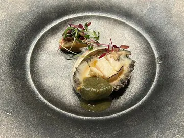 旨醞鐵板料理是饗賓集團旗下高檔鐵板餐廳,位於新莊宏匯思源廣場內,38樓鳥瞰新北特區絕美景觀,不僅提供經典的鐵板燒料理,還加入了創意元素,設計高達15品奢華海陸料理現場烹調過程中,近距離欣賞主廚精湛廚藝,私人管家服務貼心服務,還會與我們互動,同時介紹料理的特色與食材的來源,增添用餐的趣味性,也學習到很多食材的小知識~炙燒和牛、干貝漢堡、廣島牡蠣、季節鮮魚、巨大龍蝦、鮮甜帝王蟹等,六大亮點美味全部一網打盡,依照食材特性分別採用「煎、炙、炸、烤、拌、蒸」│等料理手法,呈現最佳美味從第一品開胃甜筒開始,一道接一道,樣樣都令人驚艷,由資深主廚江鴻賓研發,跳脫傳統料理框架,精心製作與眾不同的創意料理,非常推薦帶家人來趟舌尖上的旅程父親七十大壽,就想帶他嚐嚐平常比較少吃的頂級料理,看到T台主播分享這家開幕不久的「旨醞」,一查才知道是跟饗食天堂同個集團,立刻就決定訂位,帶愛吃饗食的爸爸來朝聖!地點相當方便,從我家只要3站公車就到,離捷運站也很近,交通相當方便,也不用擔心會像台北市商場一樣,總是擠滿人充滿壓迫感,可以放鬆地享受美味的「旨醞」料理搭上電梯抵達38樓,出電梯左轉再右轉後,就會抵達報到區,店員會給我們一個號碼牌,再引領我們先到休息區等候,高檔鐵板燒料理的菜色,以當令食材為主,可以參考現場的電子餐點,先瞧瞧等等師傅會端出哪些好料上桌!旨醞菜單14品套餐2280元,可以加價400元升級成有帝王蟹的15品套餐,還有多款佐餐茶/佐餐酒可以加價選購喔~餐點的產地來源標註很清楚,更清楚地了解自己吃進肚子裡的東西,非常能感受到旨醞的用心!旨醞裝潢太厲害了!宛如進入叢林樹屋一樣,給人一種很高雅神秘的氛圍,在這邊休憩一下,等候私人管家稍後引領我們入座。休憩區的景觀真的太美了!高空鳥瞰新北地區的景觀,180度景觀一覽無遺,天氣好的時候,聽說還能眺望陽明山,怪不得很多情侶小倆口、全家福一同來這用餐,一邊享用美味佳餚,一邊享受絕美景緻饗賓集團APP i EAT等候的時間推薦大家可以先下載 i EAT APP,裡面有超多優惠好康,消費也可以集點,旗下十個品牌都相當厲害,我記得前幾年我還用裡面的點數換過不少旅遊商品,非常推薦大家一定要下載起來18:00一到,管家準時引領我們進入我們的用餐空間,「旨醞」擁有高達198.09坪的超寬廣空間,設有60個座位,以及三間獨立包廂,不論是宴客、聚會、過節慶,來這裡都相當適合~這次被安排到包廂空間,管家還向我們介紹,裏頭的燈光居然有四種不同的模式,營造出不凡的氛圍,給我們不同的用餐體驗,我個人最喜歡第四種模式,看得到更清楚的景觀,推薦大家也要來體驗看看一入座就提供礦泉水、氣泡水兩種選擇,我喜歡加檸檬片,喝起來帶點果酸更加開胃,吃完大魚大肉後喝上一杯,口腔變得很清爽舒服~師傅端出一大盤山珍海味,嚴選最高等級的食材,不只尺寸特別巨大,龍蝦、鮑魚還堅持用活體海鮮,就是要給客人吃到尚青的大海美味~光用看得我口水就流個不停!干貝軟嫩透光、和牛油花宛如白雪、鮑魚、龍蝦、帝王海,大海的珍饈通通擺在眼前,真的太誘人了,讓我更期待等等經過師傅料理後,會展現出什麼樣的美味~「旨醞」的師傅料理功力真的很強,師傅對食材的處理相當仔細,每個小細節都不馬虎,尤其食材的熟度掌握,這相當需要經驗,立刻展開一場鐵板燒的饗宴吧!「旨醞」師傅忙進忙出,開始準備等等開胃菜的元素,古溜的嫩蛋、帕馬森起司脆片等,都是師傅精心製作的開胃佳餚~這是我幻想的餐點,沒想到會跟端上桌的料理完全不同!開胃甜筒-松露嫩蛋/蟹肉/甜筒師傅超細心,一個個甜筒用心處理,上頭點綴上蟹肉、魚籽等海鮮,裡頭還有宛如布蕾一樣的嫩蛋,外殼則是卡滋酥脆的甜筒,介於開胃菜與甜點間的創意料理打頭陣一入口松露及蟹肉香氣充滿口中,這個香味真的太迷人,享用前別忘了可以先乾杯一下,開啟這場「旨醞」旅程的開端!伊比利花園-帕瑪森起司脆片/伊比利火腿/牛蒡/陳年紅酒醋剛製作好的帕瑪森起司脆片,一入口起司香氣超迷人,伊比利火腿不會太鹹也不會有腥味,搭配清爽沙拉超速配,令人食指大動的沙拉超爽口~值得一提是這個陳年紅酒醋,酸度剛剛好,我很怕過酸過刺激的醬料,「旨醞」的酸度非常剛好,越吃越開胃,完全就是我的菜。干貝漢堡-生食級干貝/馬糞海膽/魚子醬/紫蘇「旨醞」干貝漢堡超大顆,我超愛吃北海道干貝,但很少吃到這麼巨大的SIZE,干貝表面金黃酥脆,內裡軟嫩細緻,一咬下海膽、干貝的鮮味一湧而出~外層用海苔包起來,我推薦可以一次一大口SHOT掉,那種滿足感真的好爽喔!這道絕對是我今年最難忘的干貝料理,推薦干貝控一定要來這邊體驗看看~絕對會舉起大拇指廣島牡蠣揚-牡蠣揚/綠櫛瓜/明太子奶油超大顆廣島牡蠣,鮮甜不會有腥苦味,裏頭居然還有包裹櫛瓜,增添鮮甜度及濕潤度,生蠔鮮度瞬間提升!而且主廚還分享三種吃法,先吃原味、再沾明太子醬,最後才是金桔,三種吃法我都超愛,好希望可以再來一顆XD火舞南非活鮑-活鮑魚/白蘭地鮑肝昆布醬一顆顆活跳跳的大鮑魚,經過師傅煎到香噴噴,聞到香氣就讓人口水直流,因為食材是活的有夠新鮮,只要用簡單的調味,就能帶出鮑魚的原味,真的非常好吃~更令我驚豔的還有很難處理的鮑魚肝,旨醞使用白蘭地、昆布等原料,調味成獨特的鮑肝醬,把經常