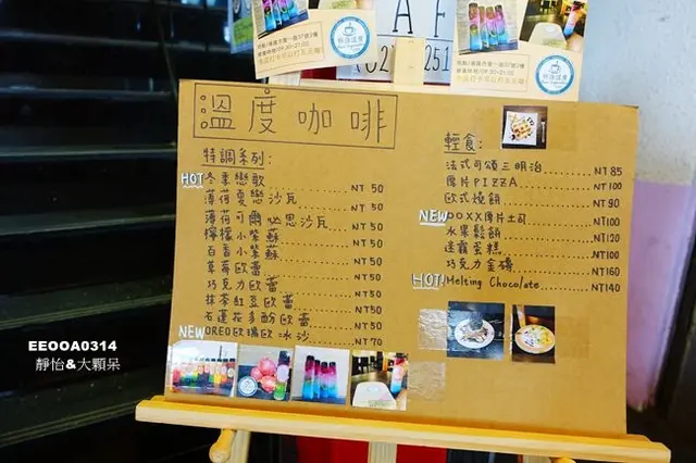 14號咖啡,原為屏東杯沿溫度咖啡基隆加盟分店,現在已經更名為14號咖啡囉,這天剛好來到基隆於是就順道過來喝飲料時下很流行、很吸睛的漸層飲料14號咖啡也有販售,而且有多種口味且價格平實,只要花少少的錢就可以喝到特別的漸層飲料店內有冷氣可以吹,還有提供Wifi及插座,也不限制時間想待多久就待多久喔!!14號咖啡位於愛一路上,距離基隆火車站、廟口夜市不遠,早上九點半就營業了,附近有停車場,也有公車站牌,交通相當便利不過咖啡廳是位於二樓,要上樓梯唷,招牌不是很明顯,要仔細看一下唷,一度我還以為自己是不是記錯門牌了,因為還在試營運所以還沒有正式招牌,或許下次來就有了喔樓梯口有MENU可以參考,可以看到價格相當平價,特調系列飲料都只要50元、輕食類也不貴...好吸引人的價格店內空間寬敞,桌位數不少,簡約舒適,沒有過多華麗裝潢,讓大家可以無拘無束、輕鬆自在聊天,很適合三五好友聚會店內有可愛的小貓咪,很調皮但也超可愛,孩子見到開心極了,直追著貓咪跑、一直貓咪貓咪的叫啊,這時還小小隻不過下回再訪應該變大貓了吧,畢竟貓咪長很快..MENU正式版也還沒出爐,目前為店家手寫,不過也算是有特色,WIFI名稱及密碼就註記在MENU下方既然名為14號咖啡當然一定有咖啡呀,每一杯的價格都不貴耶,重點店家還是提供精品咖啡,每一杯都是用心手沖出來的...只不過目前因為試營運人員都還在培訓當中,所以暫停供應咖啡,等待人員培訓OK後就會開始提供了!!敬請期待有提供輕食喔不過總類不多,來杯飲料之餘也可以解解饞..溫度特調系列也就是漸層飲料喔,一杯只要$50元真的不貴耶,原本我以為漸層飲料都很貴的說...說真的我還沒有喝過漸層飲料因為每種都想試試看所以很貪心的點了三瓶特調,店內一般是用杯裝,瓶裝則需+10元,這瓶子喝完還可以再利用,看是裝水、裝飲料放在包包裡很方便,不會外漏喔由左至右依序為~薄荷可爾必思沙瓦、冬季戀歌及巧克力歐蕾,原來就連奶類也可以漸層耶,每一瓶都好美、好夢幻啊~大家想喝那瓶呢!?薄荷可爾必思沙瓦及冬季戀歌都是蘇打類(汽水)的飲品,所以是有氣泡的口感,炎熱的天氣好適合來上一瓶~清涼又消暑這漸層真的超美、超浪漫,讓我忍不住看好久!可以清楚見到裡面除了顏色外還有新鮮水果喔!最上面都有紅色火龍果!飲用前必需要搖均勻,搖勻後顏色又不一樣了,藍色是賣的最好的冬季戀歌,土黃色則是薄荷可爾必思沙瓦冬季戀歌採用藍甘菊,另外加上雪碧及新鮮水果,薄荷可爾必思沙瓦則是綠色的薄荷及可爾必思沙瓦加新鮮水果這樣,兩者喝起來都很清爽,不過甜也不會覺得膩口,薄荷喝起來多了清涼感,喜歡薄荷味的可以考慮喝完還可以吃火龍果喔!歐蕾系列都是添加來自台東的初鹿鮮乳,品質有保障、口感更香濃巧克力歐蕾有一半的純鮮乳,這樣一瓶只要50元好平價呀!!喝起來香醇濃厚,也沒有一般巧克力的甜膩感..漸層系列飲品內都含有小碎冰,更是增添了口感OOXX厚片吐司(巧克力)厚片吐司上面擺上可愛棉花糖,這是一道可以跟客人互動的甜點,大家知道要怎麼玩嗎!?就是玩小時候我們常玩的九宮格遊戲,只要客人連線贏了這份甜點就只要半價,真是好玩又有趣欸,我們派出了兒子,結果平手雖然沒有優惠但兒子玩得開心遊戲結束後原本乾乾淨淨的棉花糖吐司變得好繽紛,兒子也迫不及待吵著要吃了,這道甜點真的很吸引小朋友,不過要點時服務人員也有貼心告知棉花糖會比較偏甜,所以不嗜甜的就要考慮一下了火腿歐式燒餅想吃鹹食建議可以點上一份喔,看似簡單不過味道不錯喔外皮相當酥脆蓬鬆,中間夾有生菜、火腿及起司等,口感蠻清爽的,不油膩!…查看更多