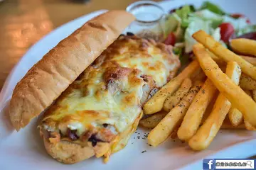 【新北美食】二訪桐話Conte De F'ee賞桐花吃桐話。浪漫的午茶約會位於土城的桐話餐廳,有著典雅精緻如童話般的庭院場景新品輕食三明治,豐富餡料夾層美味令人十指大動,少不了的冰沙茶飲搭配作陪每年的五月桐花季,白雪紛飛更是動人呀午後輕鬆的浪漫就從桐話開始吧原文網址:http://fullfenblog.pixnet.net/blog/post/209533810滿分和Kevin是一對熱愛到處趴趴走的旅人呀每到週末假期,除了自己出外旅行,就是想和朋友們聚會即便是收假的前一天,滿分們也不想放過呀今日天氣還不錯,滿分想和朋友們來個午茶聚會咱們決定約在『新北土城-桐話』餐廳入口處就是停車場囉,交通非常方便唷偷偷和朋友們分享,其實滿分今年五月時就和Kevin來這裡約會過了當時來訪是5月桐花季的時候,到處開滿了油桐花,美不勝收因為喜歡這裡的氣氛,所以這次和朋友們聚會就決定是這裡啦回顧五月桐花季。桐話->http://fullfenblog.pixnet.net/blog/post/201489895熟悉的白色長廊,入口處還有貼心的停車場公告看版上『桐話快報』的餐點供應,旅人們也可以參考唷走入桐話餐廳,服務人員熱情的接待,非常有元氣餐廳內的裝潢基本上沒什麼大變動,依然讓滿分覺得非常華麗漂亮再次看到沙發圓座,滿分依舊會嚮往耶像不像是公主和王子的下午茶聚會呀 (滿分好會想像唷)吧台上有許多可愛的小裝飾佈置點綴在餐桌上,感覺就非常熱鬧呢桐話的名片是女孩們會喜歡的蒂芬尼綠唷喜歡的朋友們,一定要給它拿一張啦PS:其他的裝飾品就只能純欣賞唷服務人員將滿分們帶到靠窗的四人坐位區採光相當明亮,非常適合愛拍照的我們呀桐話餐廳的Menu粉嫩色系非常有質感,提供多款豐富餐點排餐、義大利麵、燉飯、Pizza、鬆餅、下午茶、小點、飲品等等…上次來訪滿分就超推桐話的『巧克力鬆餅』這次和朋友們再訪,要來品嚐店家新品-『三明治套餐』小美人魚狂想曲 $280現烤酥軟的哈斯麵包,豐富的內餡夾層,拿起來超扎實的啦切片的起司條,熱騰騰滴~~小心起司噴出唷底層切片的煙燻鮭魚,口感香嫩可口,非常有味好食一手拿起,大口咬定,可吃出千島醬的香氣淑女的水水們也可以分層品嚐,一樣多滋好味道飲料鮮艷上桌啦大家都好會點,排整排看起來繽紛又夢幻啦滿分點的是可可歐雷,本來想點巧克力奶昔,可是當天賣完啦,看來這也是人氣商品唷 (趕快筆記…)可可歐雷$150香濃微帶苦味道還蠻濃郁滴,滿分覺得還不錯朋友們點的是夏日冰沙$180,鳳梨百香果滋味,超甜超好喝,果香味十足,偷喝一口就愛上了啦Kevin點的是抹茶歐雷$120也不錯喝,濃郁抹茶的香甜滋味香檸冰茶$120沁涼解渴,微甜帶點酸,比較前面的飲料,是稍微簡單一點唷枊橙奇異果冰沙 $180因為桐話的水果冰沙真的太好喝了,朋友忍不住又再加點一杯水果冰沙天呀~~~怎麼這麼好喝,水果香氣和甜味十足,好吃又好喝大力士的POWER $260牛肉三明治切片拼盤,搭配生菜沙拉和金黃脆薯鮮豔配色,看起來超可口的啦拿取時小心燙手唷,吐司烤得酥脆微焦內夾滿滿的牛肩肉和濃濃起司入口品嚐還吃得出黑胡椒的滋味肉塊鮮嫩好食,搭配起司更是美味牛肉吐司少不了的酥炸薯條,果然是大力士的POWER呀混血王子與哈斯 $280連王子都出現在菜單上啦蓬鬆酥軟的哈斯麵包,滿分覺得口感也有點像蛋糕體,非常特別混血王子原來是內層有花生醬和蘋果片厚切片的照燒雞腿看起來就超多滋的啦花生麵包和蘋果混搭意外的好吃呢水果的清甜和花生的甜味,非常合拍和厚實的雞腿肉一起品嚐,多層次的口感讓我們讚不絕口滿分非常推薦這道混血王子唷三隻小豬愛起司 $260上桌就聞到起司飄來的香氣啦切片時就感受出法國麵包的酥軟,純吃麵包都相當可口內餡是松板豬肉和切達起司,大口品嚐,香味十足還吃得出泰式酸泰濃郁的滋味,入口還忍不住吮指呀愛吃焗烤口味的朋友們可別錯過啦每道套餐都有附生菜沙拉和油醋醬,讓旅人們品嚐美食不膩口唷趁著明亮的天空,飽餐一頓後起身到桐話庭院散散步吧滿分就是喜歡桐話裡整片草綠色的大庭院周圍被樹群包圍,依偎藍天,也是美圖一幅後院如果能再增添可愛造景,相信一定會更美更熱鬧啦滿分和姐妹們都喜歡拍照,當天就在桐話裡隨意走遊合拍享受屬於我們歡樂的假期時光至這裡蚊蟲也不少,請朋友們要記得擦防蚊液唷不少來此用餐的旅人,也都喜歡到戶外來取景拍照呢PS:桐話也有貼心供應防蚊液唷布朗尼 $120拍完照後 ,再來份甜點吧,桐話甜點均一價 $120上桌時可不是簡單的一片而以唷,而是整盤亮眼呈現二片三角布朗尼,撒上糖霜,再淋上巧克力醬和焦糖醬美味可口,布朗尼口味香濃好味道,還吃得到香蕉與堅果呢少不了冰淇淋和奶油的陪襯,冰與熱衝突的美味真是難以用言語形容呀滿分超推布朗尼唷,喜歡巧克力的朋友們一定要試試啦磅蛋糕$120磅蛋糕口感較為札實,咀嚼時吃得出抹茶與蛋糕的香氣不會過於甜膩,搭配奶油一起品嚐更是多滋有味唷滿分當日和朋友們在桐話裡用餐聊天,從下午茶聊到甜點晚餐啦餐廳的空間實在是太舒服了,要不是明天要上班,我們更捨不得離開呀準備離開前,天色已晚,沒想到夜間版點燈的桐話是如此動人夢幻呀和白天版舒適的青青大草原相比,讓滿分感受到桐話不同美麗的面貌滿分們二訪桐話餐廳與朋友們聚會用餐,依然很喜歡這裡首次品嚐店家的三明治套餐,餐點豐富,味道也不錯特色飲品和冰沙更是讓滿分們