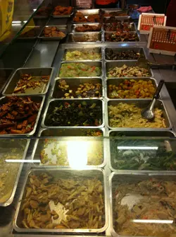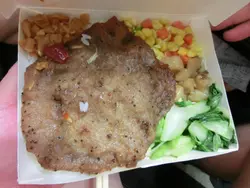 如果不知道吃什麼就會到這裡報到,在汐止這家店每天都會排隊,雖然賣的是簡單便當,然而憑藉著55元的銅板價也有很高知名度。炸排骨外帶似乎會因為碰到菜而沒有那麼脆和香,飯本來是粒粒分明也會比較濕潤了! 辣蘿蔔不和他要不一定會給,滷汁也是自己和老闆要的喔~筍絲我覺得做的入味又嫩,四季荳炒魚干四季荳有點太爛了~玉米今天的有點太爛有點可惜! 品質不致於太爛但每天的菜實在是不一定品質,要自己再看看再買!楊董排骨燒肉便當店 中興路160號…查看更多