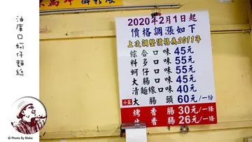 新北板橋知名老店油庫口蚵仔麵線,許多報章雜誌電視節名都曾報導過,在Google評價上也有超過4000則,並且還有4分以上的分數,油庫口蚵仔麵線最大特色就是吃大腸蚵仔麵線搭配烤香腸,一口油脂豐厚的烤香腸,一口大蒜,再一口重口味麵線,來店裡的客人都是這樣子點,我個人偏愛油庫口蚵仔麵線的烤香腸勝過大腸蚵仔麵線。網路評價破4千則的油庫口蚵仔麵線油庫口蚵仔麵線我個人之前就吃過兩三次,漢生東路那邊的分店有吃過,這邊的總店也有吃過,口味其實差不多,只是兩家店的營業時間不同,總店在住宅區附近,營業時間是從早上到傍晚,漢生東路那邊是做下午到深夜,這次吃的是油庫口蚵仔麵線總店,離捷運新埔站2號出口步行7分鐘,在巷子裡面,看到最多人排隊的那一家就是了。油庫口蚵仔麵線最有名就是那個麵線搭配香腸的組合,板橋在地人都會稱這為全套,來光顧的客人也多,光是烤香腸就有三個人,處理麵線的也有三個人,還不包含收銀跟清潔的,消費方式是先到櫃台點餐,在拿著餐點進到店裡面找位置坐,因為就麵線跟香腸,其實用餐時間也快,翻桌也快不用等太久。油庫口蚵仔麵線菜單價格價錢油庫口蚵仔麵線菜單價格已經有在2020年2月1日做調整,原本綜合麵線一碗40元現在價格改為45元,其他的也有些許調整,這次調整已經是自2011年後才調整的,蚵仔跟大腸單獨口味是麵線份量一樣,只是料有變多,蚵仔麵線一碗55元,大腸麵線則是一碗45元,另外烤香腸是一隻30元。油庫口蚵仔大腸麵線配烤香腸大腸蚵仔綜合麵線 NT$45元油庫口大腸蚵仔綜合麵線用的是手工麵線,所以麵線的粗細不一樣,綜合口味是大腸加蚵仔,蚵仔都有裹粉,吃起來有一種爆漿感,還算新鮮,大腸是走帶有Q度的乳白色大腸,不是軟嫩重鹹的魯大腸,吃起來很有口感,湯頭鹹甜鹹甜的,加一匙辣椒感覺更對味。烤香腸 NT$30元有炭烤的香氣,要下去整個肉汁很飽滿,鹹甜鹹甜的肉餡吃起來挺舒服的,瘦肉多一些,也蠻有咀嚼的口感,加蒜頭吃不錯,也可以沾點墨西哥辣椒,感覺更開胃。油庫口蚵仔麵線我個人喜歡烤香腸多過於麵線,心裡面總是覺得這是一家被麵線耽擱的烤香腸攤,單吃麵線可能會覺得好像少一味,但兩個搭著吃就會覺得「哇!這超強的」,有機會真的要來試試油庫口蚵仔麵線這特有的麵線配香腸。…查看更多