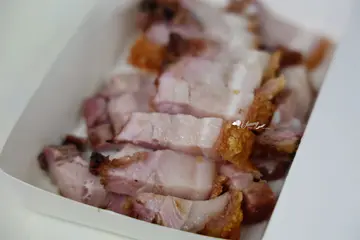 新莊美食推薦港宏燒臘。下新莊知名的香城燒臘在地經營了20多年,是許多輔大生的美食回憶。2022年香城燒臘宣布歇業,而熄燈後三天,由原香港師傅的徒弟接手,並更名為港宏燒臘,不變的好口味,依然是在地人推崇的燒臘便當店。內容目錄新莊輔大美食推薦-港宏燒臘港宏燒臘的前身香城燒臘,一直深受當地友人的推薦,但因為離捷運有些距離,一直未能有機會拜訪。直到聽聞香城燒臘要歇業的消息傳來,友人還一直抱憾碎念。幸好,就在香城燒臘熄燈後三天,由徒弟夫妻倆接手,重掛招牌,才讓美味持續飄香。據在地友人稱原來的裝潢都沒變,港宏燒臘改的就是名字,還有掌杓的人。不過據友人的經驗道,味道幾乎是沒什麼變,生意依然跟之前一樣強強滾!新莊推薦燒臘便當-港宏燒臘這天我們下午兩點多到訪港宏燒臘,沒想到外帶的客人依然絡繹不絕。店內午餐用餐時間僅到下午一點半,過了時間若要內用,可以詢問一下工作人員。午餐供應到下午三點。港宏燒臘很有老式燒臘店的風格,新招牌掛上去已有年餘,卻還很新穎的感覺。店內座位也很有港式餐廳的氛圍,座位的桌距很窄,整家店座位不超過20個。在每張桌上都有這個茶壺,這幾乎在老式的港式燒臘店才會見到,真是令人懷念!吃港式燒臘配一杯解膩的茶水,杯子上的花紋隨著年代以久也模糊了!現在的燒臘店,大部份都是使用紅茶機。這傳統茶水標備,果然是道地香港師傅帶來的習慣。而每家便當店該有的湯品,自然也是沒少。港宏燒臘有在正統港式燒臘店才見到的鴨肝腸,還有特別的豉味臘花肉。金黃酥脆的明爐燒鴨實在太令人垂涎了!油亮亮的玫瑰油雞。肥美的雞腿。裹著蜜香的蜜汁叉燒,亮晶晶且厚實的模樣,真是令人食指大動!港宏燒臘有一般燒臘店比較少見的滷水扎蹄。所謂的滷水扎蹄,將豬腳皮仰攤鋪平,上放一塊糖冰肉(用白糖醃製的肥豬肉),冰肉上再加一塊瘦肉片,如此相疊而成,最後把掍紮一起,再用滷水燉熟。切開的扎蹄色澤帶紅略有白,是粵菜冷拼的主要用料之一。負責切肉的工作人員見我們好奇,還特地切了一人一片試吃。吃過的心得,就是好好吃,想帶回家跟家人分享。刀起刀落,每樣食材都化成美妙的滋味。每個便當完成後,還會在淋上店家自製的醬汁,感覺比起一般醬油還來得黏稠一些。港宏燒臘 菜單Menu拍攝日期2023/06,若品項或價格有異動,請依店家公告為主。幾乎每種口味都統一125元。港宏燒臘 餐點介紹平常最愛就是化皮燒肉與燒鴨的組合,但因為試吃了扎蹄,覺得味道很好,於是多了一個化皮燒肉與滷水扎蹄的組合。港宏燒臘 燒肉扎蹄雙拼飯 $125港宏燒臘的配菜很簡單,也沒得選擇,就是高麗菜、滷蛋及炒豆乾。不管哪家燒臘店,幾乎必點的就是化皮燒肉。豬皮的部份真的超脆又香,三層肉雖是有脂肪,但整體吃來不會很油膩,越吃越香。扎蹄吃來外皮Q彈,肉質爽潤,肉味甘香,還能吃出少許酒香。推薦給沒吃過扎蹄的朋友。港宏燒臘 燒肉燒鴨雙拼飯 $125特別要說的是,港宏燒臘的飯量超多的,這一盒的飯量,回家後艾方妮跟艾媽兩人分食是剛剛好的,難怪網友稱這便當可以吃很飽!燒鴨的部份脆皮及油脂度,當然是不在話下,而鴨肉溫潤不乾柴,也是好吃無誤。淋上的特製醬汁,略帶甜味不過鹹,香氣也足。可能我們到的時間已過午餐尖峰時間,也正是廚房在準備下個餐期的時間,此時竟有剛出爐的化皮燒肉,是不是看起來超好吃的!此時友人就直接單買這化皮燒肉,回家晚餐加菜!單點化皮燒肉是秤重的,這樣一盒才200元,真的蠻划算的!脆香的外皮,還有肥瘦相間的五花肉,看起來實在太欠吃了!外帶燒肉,醬汁會另外附,有需要再自己加。但其實這樣單吃就很美味了!港宏燒臘這個燒肉果然名不虛傳啊!雖然掛上了新招牌,但港宏燒臘將20多年的老味道繼續傳承下來,才能讓我們吃到這麼道地的港式燒臘,而且在google地圖上2000多則,有4.0的好評,份量大且美味的港宏燒臘,有經過可以試試喔!…查看更多