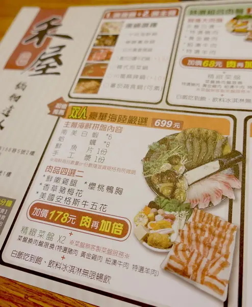 新莊除了副都心有新開的美食外南新莊野有自己的美食區域,老實說王子新對南新莊地方不熟雖然長跑新莊卻不知道原來新莊區域還有自己老地方美食 那今天吃什麼呢?王子新帶大家吃平價、肉質卻優質的火鍋店位於丹鳳站的鴻金寶麻吉廣場二樓的:禾屋日式涮涮鍋以大份量大享受聞名,當然還可以菜盤換肉盤喜歡吃肉的朋友不要錯過喔! 禾屋位於丹鳳站巷弄裡王子新對這邊沒有很熟悉不過這裡的繁榮程度就像王子新認識的中壢一樣繁榮! 搭乘電扶梯上來二樓就看到店家了強烈的藥膳湯頭襲捲而來! 報好康跟大家說:平日下午14:00~16:00,免費加大 *菜盤可換肉盤當日壽星: 5折,當月壽星: 8折 店內空間超大的百人似乎沒有問題! 用餐方式有傳統的桌椅也有日式盤腿用餐方式(感覺超酷的) 當然還有半包廂的設計 店內的冰淇淋、飲料、醬料採用自助式另外:白飯無限吃! 今天選的是日式用餐區要拖鞋入座用餐感覺非常新鮮,但出來拿飲料有點不方便阿XD 今天要吃NT328、388套餐肉盤加倍!另外菜盤也可以換肉盤! 328肉盤加倍只需138388則需要188都是選一種肉品喔! 再來是選鍋底今天養生一點選干貝海鮮鍋、藥膳養生鍋冬天就是要補一下嘛! 蔬菜盤分量很大底部用大量高麗菜堆疊而成 火鍋料很酷居然有蘑菇!!! 干貝海鮮鍋清湯系列,應該說是原味湯底帶有干貝的鮮味然而沒有喝到昆布的味道 藥膳鍋王子新非常喜歡這種湯底甘甜順口越煮越香!看來裡面一定有甘草那種回甘的滋味一定要多喝幾口呢 蔬菜盤的高麗菜很多煮完一鍋可以熬出甜美的湯頭 除了蔬菜熬煮湯頭火鍋料更能增添湯頭味道 安格斯牛小排(加大X2)王子新最喜歡吃牛小排那種滑順軟嫩的肉質從吃牛排時代就認識的美味部位雖然肉質沒有和牛紋理漂亮但口感極佳 脂肪與肉的比例合宜最重要是涮火鍋的時候,肉片完整沒有碎裂這是好的肉品最快的鑑別方式 放點青蔥直接入喉!享受極致牛味的美味 還有菜盤換的羊肉這份量是標準分量呢 王子新非常喜歡吃羊肉選擇藥膳鍋搭配羊肉是最佳的選擇喔! 藥膳的甜味加上羊肉的野味兩者搭配好吃!要趁熱吃喔 梅花豬與伊比利豬(加大!X2)伊比利豬花色好美喔,比常見的松阪豬更美! 那種紋理與淡淡的粉紅注定與一般豬肉的不同是饕客眼中的豬肉聖品阿! 梅花豬也不錯喔傳統滋味煮火鍋兩種肉品來個無敵大雙拼! 伊比利豬肉偏白,肉質非常細膩好咬一點調味就能吃到豬肉本身的甜味 五花豬也不錯非常有咬勁放一點蔥花味道更顯著喔! 最後來個肉肉拼盤吧!不知道大家喜歡吃什麼肉呢? 熬煮湯頭後來個火鍋料之旅吧!蝦飽覺得甜不辣好吃呢~ 最後火鍋店少不了的飯後甜點:冰淇淋王子新推薦芋頭和花生口味!古早味好滋味! …查看更多