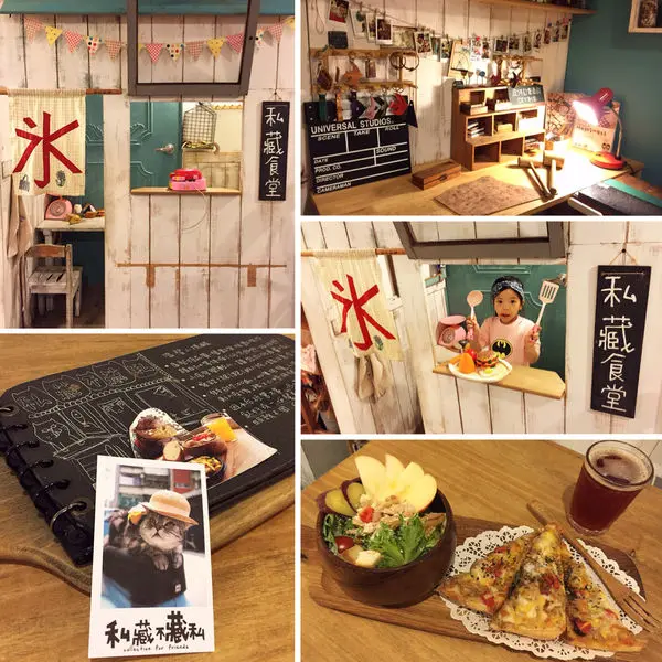 店家資訊:私藏不藏私 雜貨咖啡店地址: 新北市中和區景安路167巷6號1樓電話: 02-8943-3173營業時間:平日: 12:00pm~21:00pm假日: 11:00am~21:00pm週一公休FB: 私藏不藏私 雜貨咖啡店免服務費,提供免費WiFi,客滿時用餐限制2小時"私藏不藏私 雜貨咖啡店"位於中和景安路的靜謐巷弄內,充滿鄉村雜貨風的設置,復古懷舊的風格,吸引不少顧客前來造訪打卡店內提供各式咖啡、飲品、調飲,主餐米飯(日式便當、乾咖哩)、各式輕食、沙拉、小食、鬆餅、手工甜點...等餐點採現點現做,絕不使用調理包,在這用餐,不但可以品嚐精緻美味的手作料理,還宛如沉浸在溫馨的解憂雜貨舖中,讓您忘卻都市中的忙碌步調痞客邦完整圖文: https://alicehuang1199.pixnet.net/blog/post/404906404鄰近捷運景安站,步行約5分鐘左右,即可到達光看外觀就一整個好拍,充滿濃濃的雜貨風情,店前的偉士牌及復古腳踏車,好喜歡他門外的裝置風格,讓人想一探究竟門外的營業時間,以可愛的小黑板標示,一旁的古早味標誌,好有懷舊風味靠近門口的是露營風格的區域,古早的電視機,及復古的裝飾,這裡很適合三五好友聚餐或是親子用餐這一區則是以塌塌米為主的設置,感覺相當舒適,也有日式風味木製的餐盤及餐具,皆可購買喔店內還販賣各式的文創小物,有意者可詢問店家喔裡面的區域,店內桌椅以小學課桌椅為主,大約有20個座位左右,多為四人座位,座位相當寬敞,動線也很流暢還有擺置皮革手作作品及陳列許多早期的美工器具底部為結帳處,裡面則為中央廚房,店內衛生環境掌控得很好,毫無油煙味店內有不少貓咪的圖案、掛飾,實在是療癒又可愛店內還有一處小房間,大約可容納12個座位,可提供多人聚餐使用小學時期的課桌椅,真是讓人懷念,還有一台復古電視機,真是讓人宛如回到小學時期的教室啊~~~~店家也掛置登上中國時報及各大媒體的報導,均獲好評,難怪開業不一會兒,馬上就客滿了呢這一處是小朋友相當喜歡扮家家的小空間,裡面有各式玩具,宛如小小冰店的小老闆,小朋友玩得不亦樂乎MENU*店內免服務費*提供免費WiFi*小學以上,每人低消100元 (不合併計算)*假日若客人較多有候位,用餐限制2小時米飯 (唐揚便當) $239加點飲料,可享飲料8折充滿日式風味的便當,主餐為:(唐揚雞肉、香嫩玉子燒、竹輪包蘆筍、香蔥豬肉捲、德式香腸小章魚、馬鈴薯、青花菜),飯食: 鹽烤鮭魚豆腐青菜蘿蔔湯、手工莓果優格唐揚雞肉店家嚴選雞腿肉炸至外層酥香,內層肉質相當多汁鮮嫩,入味十足,口感鹹香可口,而且份量也蠻多的副餐有:香嫩玉子燒,口感軟嫩又充滿蛋香,店家還巧妙的串上小番茄及蜜餞,以增添清爽風味竹輪包蘆筍,鮮美的竹輪,裡面包覆脆嫩的蘆筍,相當爽口香蔥豬肉捲:略為烤製的豬肉,充滿醇厚的肉質口感,搭配青蔥,實為絕配德式香腸小章魚,德式香腸外皮脆Q又鹹香美味烤馬鈴薯,口感綿密又鬆軟川燙的青花菜,清新又具原味鹽烤鮭魚,鮭魚外層焦香美味,內層肉質軟嫩鮮香,米飯,Q軟香甜,撒上飄香的香鬆,及附一顆醋釀的梅子,相當下飯及增添美味豆腐青菜蘿蔔湯湯品非常清爽宜人,清淡爽口,豆腐及紅蘿蔔也相當清新淡雅手工莓果優格無糖的原味優格,上面淋上自製手工莓果醬, 酸酸甜甜,清雅開胃,爽口無比 一整份份量十足,一個人可以吃飽飽的,美味又菜色豐富,讓人感覺幸福滿滿丸の家族鬆餅 $260任點飲料,可以 以$180加購 丸の家族鬆餅 一份一整份端上桌,頓時吸引大家的目光,實在好可愛啊~~~~~尤其棒棒糖的小湯匙,實在很療癒自家製私藏麻糬鬆餅一整份大約有15顆左右,我覺得份量十足,建議兩人以上分食,或是給家中小寶貝當點心都很適合呢麻糬鬆餅,外層鬆鬆軟軟的,有點近似雞蛋糕,內層有QQ軟軟的麻糬,口感相當不錯,咀嚼時,還飄散出陣陣的蛋香,也可沾附一點下層的冰淇淋,口感會更佳萬丹紅豆煮,以萬丹紅豆燉煮,保有紅豆顆粒的口感,品嚐時,綿密香甜手工湯圓,QQ軟軟的小湯圓,還有抹茶口味的,色彩相當繽紛香草冰淇淋,香甜的香草冰淇淋,淋上加拿大楓糖漿,口感更豐富加拿大的楓糖漿,無論淋在冰淇或是湯圓、紅豆上,芳香甜蜜,都很適搭榛果焦糖牛奶 (冰) $110以香濃牛奶上,淋上榛果焦糖醬,口感甜蜜飄香,香醇濃郁的牛奶香,帶著榛果焦糖的甜蜜滋味,口中縈繞著濃醇香甜,令人喜愛汽泡蘇打 (無法調整冰塊甜度)蔓越莓花果 $140以蔓越莓果醬及綜合水果菓乾泡製的汽泡蘇打,適時的攪拌均勻,酸酸甜甜的菓乾滋味,口感沁心清涼裡面還附有一大塊水果冰磚,以檸檬、香橙、番茄菓乾製成水果冰磚,待融化後,品嚐起來更是清新、透清涼搭配米飯、輕食、沙拉,加點飲料,可享飲料8折的優惠"私藏不藏私 雜貨咖啡店",餐點都是店家現點現做的手做餐點,口感及美味度都是十分大推,店內的裝置以溫馨的鄉村雜貨風為主品嚐美味餐點之餘,還可逛逛店家販賣的文創商品及雜貨手作,店內的氣氛相當溫馨、柔和,用餐起來相當舒適,無論聚餐或是約會都適合有空可以造訪這間具有溫度的小小鄉村雜貨舖^^…查看更多