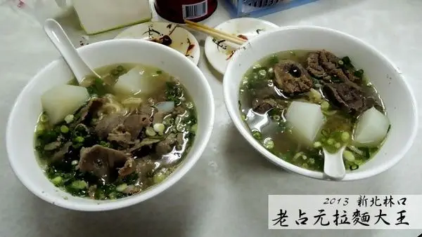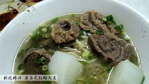 老占元拉麵大王位於林口竹林山觀音寺附近,是在地30年老店,以清湯蘿蔔拉麵為主打,搭配牛肉、羊肉及雞肉,還有乾拉麵及各式小菜,在GOOGLE MAPS上的評論有5000多則,高達4.4高分,難怪用餐時間會大排長龍。來到林口竹林山觀音寺祈福拜拜,結束後經過老占元拉麵大王時,被長長的排隊人潮所吸引,因此一個人去停車,一個人加入排隊人龍裡。這附近很容易拖吊,所以建議大家還是找到車位停車,這樣比較保險。新北拉麵推薦 老占元拉麵大王這天路過老占元拉麵大王時,已經是下午一點多,沒想到用餐排隊的人潮還這麼長。來到老占元拉麵大王,無論是外帶或內用都需要排隊,內用等服務人員安排座位才能入內等了10多分鐘,終於入內準備點餐了!在點餐檯的位置連接著開放廚房,這個區域大概只能容納3張桌椅。另一邊則是排隊時見到的內用區,店面看起來很乾淨明亮,只能說高朋滿座啊!餐具櫃中除了筷子、湯匙及分裝小碗。調味醬區的辣油加在滷味小菜及乾麵之中,有加分的效果。林口30年老店 老占元拉麵大王老占元拉麵大王從1993年成立至今,已超過30年,以好滋味留住客人。在老占元拉麵大王的攤頭上,可以發現這個以大量蘿蔔熬煮的清湯,這是所有麵湯的基礎。老占元拉麵大王 菜單 MENU 價目表拍攝於2025/01,餐點或價格若有異動,請依店家公告為主。小菜區的品項很多元,放在玻璃櫃中,看起來乾淨美味。小菜的價錢是以盤子的顏色及形狀來區分,利於結帳。老占元拉麵大王 餐點介紹在等待拉麵的同時,先來吃小菜吧!老占元拉麵大王 涼拌茄子 $60茄子處理得很好,醬汁也很開胃。老占元拉麵大王 涼拌海帶芽 $30海帶芽很脆口。老占元拉麵大王 涼拌豬肝 $60豬肝很軟嫰,沒有腥味。老占元拉麵大王 滷味拼盤 $60這一盤有滷蛋、豬頭皮及豆腐,喜愛小菜的我們吃得很開心!老占元拉麵大王 牛肉拉麵 $170有別於一般常見的紅燒牛肉麵,老占元是以蘿蔔清湯為基底,飄散著蔥花的湯麵,看起來就很清爽!大塊飽嘴的牛腱肉,燉至軟嫰易嚼,其間筋絡已膠質化地融於口中,這樣牛肉深得我們的喜愛。清甜的湯頭結合牛肉的油脂,帶出濃郁的牛香卻又很爽口。店名稱為拉麵大王,一點都不誇大!微粗的拉麵,帶著彈牙的Q勁,每一顆麵條都吸附了湯汁精華,真的很優秀!老占元拉麵大王 羊肉拉麵 $130羊肉拉麵用的是羊肉片,滿滿的肉片舖滿到看不到底下的麵條。羊肉片的熟度也掌握地恰到好處,略帶油脂,軟嫰好嚼。同樣是蘿蔔清湯,大塊蘿蔔吸附了湯汁的精華,難怪蘿蔔拉麵也能登上菜單之一,可見這蘿蔔真的很有水準。羊肉拉麵的湯,相較牛肉拉麵更加地鮮美,清甜美味還能有加湯的服務。老占元拉麵大王 乾拉麵 $45因為鄰桌兩位饕客級的客人,都點了乾拉麵,因此我們也追加了一碗來試試。飾以肉燥及蔥花的乾拉麵,份量也是不小。這碗乾拉麵,更能吃到麵條的Q彈,巴附著肉燥醬香,每一口都香味四溢,嗜辣者記得加辣,吃來更過癮!老占元拉麵大王 牛肉湯 $150二訪時,我們二話不說,直接點了乾拉麵,再加牛肉湯,這樣的組合真的很讚!老占元拉麵大王 蘿蔔湯 $35我們這天也點了單純的蘿蔔湯,滋味真的很清甜。一早10點就開門的老占元拉麵大王,下午僅休息半小時,若避開尖峰時間來,應該就比較不用排隊!我們用餐後的心得,私心很愛乾拉麵搭牛肉湯的吃法,當然各式小菜也不容錯過!…查看更多