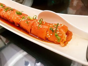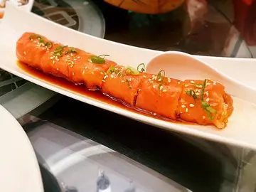 我們真的很愛吃烤鴨!而且來吃烤鴨就是要三五好友一起來吃才過癮啊~這次特別來到新莊的典華雅聚,早有耳聞這裡的窯烤櫻桃鴨很厲害,還有很多新鮮的海鮮、港式點心,終於約了平日的中午來個午餐聚會!位於機場捷運A4新莊副都心站2號出口,地下室也有停車場,交通算是很方便。附近還有去年才開幕的宏匯廣場,吃飽了還可以去逛逛街呢~ 一進門就可以感受到典雅中帶點華麗的風格,中式的設計非常有味道。還有一間食茶空間,擺放著好多茶具,偶而會舉辦活動。 座位區有一般開放式的座位,適合三五好友來吃飯,沙發的座椅看起來很舒適。 另外一區是獨立包廂,每間包廂都有獨立的門,隱密性很夠,適合公司辦活動或是即將到來的母親節家庭聚餐,而且每一間都有不同的風格,有溫馨典雅的,也有華麗氣派的,甚至還有一間裡面可以擺放兩張大圓桌的。 開放式廚房讓人看得到料理過程,也是很用心。 這次來剛好可以吃到新的春季新菜色,醋味花枝卷吃起來非常開胃,一口咬下口感很有層次,酸酸甜甜的味道是一道很棒的開胃菜。 東北酸菜翼板牛將東北常見的酸菜來拌炒牛肉,吃起來很香又不膩,而且牛肉片切的厚薄度我覺得剛剛好,吃起來肉質很嫩,也是一道很下飯的菜。 櫻花蝦海鮮炒飯上面滿滿的櫻花蝦,炒飯炒得粒粒分明,像是每粒米都吸附了醬汁,而且不像一般的炒飯會偏鹹,加上櫻花蝦獨有的香氣,整個炒飯的口感很高級。 晶瑩鮮蝦餃皇附上的紅醋很特別,是用針管方式的直接注入蝦餃裡面,還真是有趣!裡面的蝦和餡料非常的飽滿,真的是有夠紮實的好吃,而且感覺比一般吃到的蝦餃還要大顆。 沒多久大家期待的烤鴨送來囉!師傅直接到我們的桌邊來準備上菜,專業的片鴨手法以及烤鴨的香氣讓我們都快流口水了~ 第一吃法是鴨壽司,油亮香脆的鴨皮,底下有一點點的油脂,包覆著醋飯和起司以及薄薄的芥末,這鴨皮一定要有脆度,吃起來才會香脆可口,微微滋潤的油香搭配著飯一口咬下還真是滿足,我真的大推大家一定要吃這一道!而且非常貼心的用湯匙一個一個盛裝著,讓大家非常好入口。 片皮鴨搭配的彩色醬料盤還真是豐富,裡面有冰梅醬、辣味噌醬、香椿醬、甜麵醬以及黃瓜、蔥段、當季水果,這些配料會依季節變化來調整,這次最特別的是還有鳳梨,我特別喜歡用餅皮包裹著鴨肉搭配鳳梨的滋味,烤鴨帶點油脂的脆脆口感,搭配鳳梨和不同的醬汁,或是蔥段搭配甜麵醬等,跟平常吃到的烤鴨很不一樣,每個人都可以依自己喜好做出不同口味的,一次就像是吃了好多種口味一樣,既特別又好吃。而且即使不用餅皮,因為烤鴨已經切成薄片,沾點醬汁,皮脆肉嫩的讓人一口接一口。 若是覺得只有兩種吃法太單調的話,可以加點一鴨三次或四吃,看是要選鴨鬆、薑蔥炒鴨架或是鴨架煮湯/粥,每種都是加價330元。最特別的是還有一道烤鴨新吃法就是金米蜜汁爆鴨架,我們這次就是加點這一道,櫻桃鴨本身口感比較細緻,又帶豐富的油脂,這樣爆炒起來,撒下金黃色的炸香米真是超下飯的,而且這是在別的地方沒吃過的口味,我們都覺得蠻特別的又好吃喔! 蘿蔔絲酥餅裡面的蘿蔔是新鮮的白蘿蔔,不是那種蘿蔔乾的,吃起來外面酥酥的有種入口即化的感覺,裡面的蘿蔔又多汁可口。 金磚燒腩仔皮烤得又香又脆,看起來就很好吃,肉非常的紮實,搭配這鹹甜的醬汁,算是喜歡港式燒臘人都會喜歡的。 如意春風卷粉紅色的外皮,是紅麴糯米做成的腸粉,裡面包裹著蝦仁及用米漿拉絲後過油的越南米網,口感好似炸油條,搭配這醬汁吃起來蠻清爽的。 XO醬蘿蔔糕的味道超夠味的,外皮酥酥脆脆,一咬下去蘿蔔糕卻很軟Q,重點是非常的入味,微微的XO醬辣味吃起來很過癮。 甜點是芋香西米露,算是比較濃一點的甜湯,芋頭的味道很重,但是不會太甜,飯後來一碗真是完美的ending! 這一餐吃得超滿足的!每道菜都蠻有特色的,最重要的是烤鴨真的好吃,果然不負我們的期待,一次吃到烤鴨三吃,還三種都好吃,推薦大家來這裡一定要點~而且其他海鮮、炒菜類以及多樣化的港點,菜單選擇算是蠻多的,可以滿足很多人不同的口味。高雅舒適的用餐環境,不管是商務聚餐或是家族聚會都很適合,我真心覺得價位也很合理,是個很適合聚會的好地方喔!想到母親節也快到了,不如就帶媽媽和家人來這裡慶祝一下吧~…查看更多