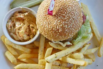 那天看到一句話 很喜歡((完全與首圖無關XDD最困難的事 不是你終於走上了那條辛苦堅持的路 而是你選擇了轉彎覺得有些點醒 執著的腦袋兒 的一句話也覺得跟今天分享的餐廳 意境很符合((試圖想默默的扯上關係今天分享的餐廳位在淡水老街的尾端 Catsup蕃茄醬美式風味餐廳 跟有名的Alleycat's似乎是姐妹店關係位在二樓 一踏進店內 就可以感受到 明亮的光線 透過落地玻璃 灑進來提供早午餐 美式煎餅 漢堡 義大利麵 排餐等 看海景 賞夕陽 絕美位置 煙燻鮭魚歐姆蛋捲$230小清新的擺盤主食歐姆蛋以外 還有了兩片酥脆果醬土司附的捲心菜絲沙拉滿好吃的呢!!清爽的優格沙拉醬 酸酸甜甜的 十分順口主角 燻鮭魚歐姆蛋來了歐姆蛋外皮煎的金黃般的色澤入口後 嫩滑帶有濕潤 相當鬆軟內餡的鮭魚 口感非常綿密!!並且魚肉新鮮 散發濃郁的鮭魚香味搭配化開的起司一起吃 濃郁再加分喔!!!早午餐系列皆附 柳橙汁 及咖啡或茶(可續杯)經典起司漢堡 $230漢堡餐可以任選兩樣配菜 炸薯條 馬鈴薯沙拉 捲心菜絲沙拉漢堡堡本人真的也太高了吧!!!!漢堡排本人很厚之外 還有焦脆培根 生菜 酸黃瓜等配料漢堡排相當多汁 並且油煎的剛好 不會太過老柴肉末細緻 不會有(噁心的)小塊的肥肉們搭配淋在上方濃郁的起司 更是提升漢堡排的美味呢薯條是比較細的那種 整體來說也是不錯吃的!!整體來說來淡水老街 終於有個可以好好歇著 看海景的餐廳了~~~整家店內位子不會太過擁擠 搭配窗外灑進的陽光 著實的優閒壓~~餐點價位算是平價 口味也都不錯 店家還有特別推出兒童餐想必也是很適合帶小朋友的家長們下次老街逛到腿痠的時候 可以來這裡悠閒的 享海景 賞夕陽喔CP值 4顆星再光顧意願 4顆星酥湖賞海景程度 6顆星Catsup蕃茄醬美式風味餐廳電話:2620-0388地址:新北市淡水區中正路334號3樓查看更多