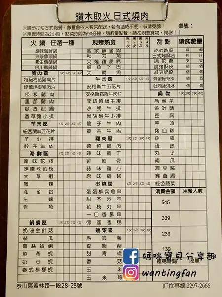 鑽木取火日式燒肉 (新北/基隆) 網址: https://s.openrice.com/cHRSmG2zn80W0 地址: 新北/基隆新莊區泰林路一段28號 電話: +886 0222972666