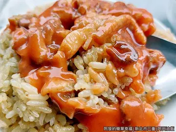 最近某平日上午,因故到三重的正義南路找友人,忽然覺得早餐好像沒吃飽,想再吃點飯食類,但也不用太多。於是想到了就在附近,已好幾年沒造訪的這攤50多年老店攤,除了深受不少在地人推薦與喜愛外,也曾受東森、非凡…等新聞與美食節目報導過的「阿田油飯」~▲店外觀外觀不是很顯眼的「阿田油飯」,位於光興國小大門口斜對面的電信街內。▲店門口阿發是平日早上九點多到訪,雖未見大排長龍,但還是有好幾位當地居民,陸續前往用餐或外帶~▲攤台據說老老闆是在數十年前從中部北上打拼,原本落腳在三重菜寮市場裡賣粽子,後來才改賣可稱是粽子裸裝版的油飯,目前已傳承至第二代。(這次造訪,看到老闆身旁又多了位年輕人負責煮冬粉和湯,我猜測應該是第三代)▲價目表店家賣的東西很簡單,就只有油飯、貢丸湯、冬粉湯、冬粉貢丸湯,且都是銅板價。經營作風也很低調,雖曾被一些新聞與美食節目介紹過,但也未見因此在店內大肆張貼宣傳。▲油飯〈中〉與貢丸冬粉湯店內的招牌套餐是油飯配上貢丸湯,不過阿發想說店內的三種餐點都要吃到,所以點了油飯〈中〉+貢丸冬粉湯。▲貢丸冬粉湯▲貢丸冬粉湯特寫冬粉口感滑溜,且吸收了大骨湯頭的精華,湯頭則是充滿很清爽的簡單古早味~▲辣泡菜外觀色澤看起來相當的辣~▲貢丸冬粉湯加辣泡菜這的辣泡菜較偏辣偏鹹,應該是不少老一輩喜歡的口味,不過現今大部分人們的口味,應該就會覺得…還好清淡的冬粉湯,加上一點點辣泡菜,風味還不錯~▲油飯〈中〉油飯是用手工拌出,粒粒分明與美味的模樣。點餐時,可說要不要淋上甜辣醬,阿發喜歡淋上甜辣醬,吃起來的古早味,當然就跟店家說要淋醬囉~據說店家油飯每天現做,且堅持不用機械用手工拌飯,才能有粒粒分明的模樣外,也能保有最原始的傳統味。▲油飯肉絲油飯裡沒有先預拌入常見的香菇與滷肉絲,反而是淋上一小匙滷肉與甜辣醬後,讓客人自己拌~▲油飯,特寫店家堅持不將餡料先預拌入油飯中,再依顧客的喜好淋上配料,這讓只喜歡吃〝清油飯〞的客人也能享用。另外這的油飯,也和一般常見重油香且黏Q的口感不同,這外觀粒粒分明,只帶著單純米香與些許油香,口感不黏牙但相較濕軟些,再淋上一勺滷肉汁與甜辣醬拌上一拌,充滿古早樸實的滋味。或許因這樣的做法較不易膩口,因此據說不少老在地人不只把它當早餐,還三天兩頭就報到一次。如果你不喜的油飯,是充滿濃厚油香且黏膩的口感,而是相較喜歡口感濕軟些,或喜歡吃清油飯者,也許可以來這試試這家有著不少三重老在地人〝呷早頓〞的「阿田油飯」~…查看更多