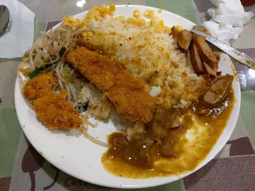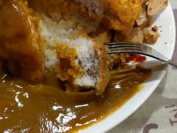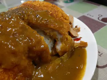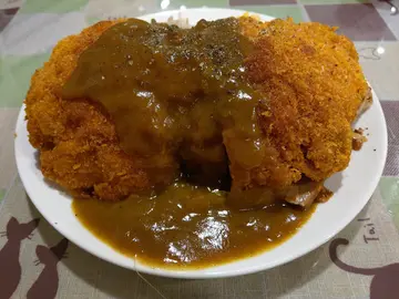 新北食物探索,第二站依舊往新莊前進,這次來到的是輔大旁 巷子內的陶花園。 故意挑了暑期前往,以為會少了學生客群,結果用餐時間依舊 高朋滿座。幸好翻桌率極高,大概等候十分鐘左右便入座,反而是 上菜速度較慢,點完餐後約二十幾分鐘才用到餐。 這裡的經典是酥炸大豬排,雖然年紀大了不喜歡吃太飽,但掙 扎許久終究還是點了一份。內用有提供檸檬水及紅茶,紅茶稍甜, 白飯可免費添加。 招牌酥炸大豬排(咖哩醬) 160元 酥炸大豬排份量十足,賣相絕對震懾人心。豬排約有圓餐盤的 四分之三大,難怪有食記說會以為自己在參加大胃王比賽,網路也 有諸多評論提及「會讓你短時間內不想再吃炸豬排」。 份量是一回事,重點還是滋味。外層麵衣稍厚硬,邊緣處尤是 ,剛開始還能接受,吃到後來會有點辛苦。亮眼處在於肉質,嫩彈 帶溼潤感,而且厚度很足,並非純粹拿尺寸當噱頭而忽略品質。以 一百六十元來說,這豬排表現值得稱許。咖哩醬濃郁帶點甘辣,個 人偏好鹹咖哩。 豬排表現不錯,然而下面的飯菜便顯得粗糙。米飯被豬排壓得 結塊成團,表面又滿覆豬排麵衣殘渣,讓人有些倒胃口。配菜有豆 干、豆芽菜及玉米粒,前兩者偏鹹,玉米粒乾扁而甜度欠缺。 倘若能以相對低些的價格單點豬排,那我覺得這裡的豬排值得 一試。不過對於學生族群又是大食量的人來說,一百六十元能吃到 這般品質的豬排,並且還有一堆飯菜,應能被好好滿足。…查看更多