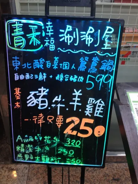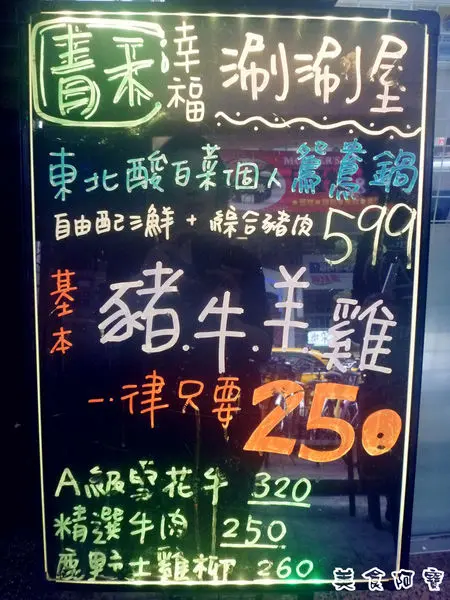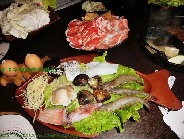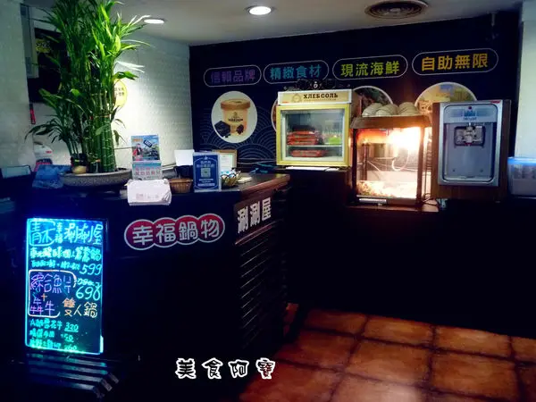 坐捷運至永安市場站, 走出捷運出口左轉約幾步, 就是青香幸福鍋物永安店所在地了,交通十分便捷! 走上2樓, 一大片的用餐場地, 座位既寬敞又舒適! 這裡有多款飲料任君選擇! 没有喝飲料習慣的我有喝了一小口檸檬冬瓜及烏梅汁, 味道均不錯! 也有咖啡機, 爆米花及巧克力口味的霜淇淋, 因為不是我喜歡的香草或牛奶口味, 所以就没有嚐試, 美式咖啡喝來一般般! 調味料區擺設很整齊乾淨! 有調味料及白飯, 烏龍麵, 粉絲, 高湯, 滷肉飯的滷汁...食量不是很大的我送上的餐就夠我吃飽飽了, 這些副食連碰也没碰... 調味料也蠻新鮮的, 有我超愛的白蘿蔔泥! 讚讚讚!!! 火鍋的湯底選了清湯跟酸白菜, 酸酸的酸白菜湯底十分開胃! 基本菜盤 除了一般常見的火鍋料外, 還有芋頭, 南瓜, 玉米, 大陸妹, 榨菜片, 番茄, 金針菇... 其中高麗菜大約佔了一半, 份量好多, 十分甜美~ 是美味湯頭的最大功臣之一! 招牌小海陸 看起來蠻豐富的! 有肉, 蝦, 蛤蜊, 花枝, 小透抽, 扇貝, 魚肉...有肉也有海鮮! 食材都青ㄅ一ㄤˋ ㄅ一ㄤˋ! 附了薑絲及一小杯酒可以去腥 綜合肉片盤 (豬/雞/羊) 這肉盤一上桌整個嚇到, 因為這大概是自己去吃火鍋肉量的3倍, 三種肉品, 份量自是加3倍, 平時很少有吃這麼多肉的習慣, 看來吃這一盤可以抵我2個星期的肉量了... 哈哈... 肉片份是不僅多, 連厚度也夠, 最近才去一家吃到飽的火鍋店那肉片薄到跟紙一樣, 整個超傻眼的... 這家的肉品相對來說有誠意多了... 而且色澤看來也頗新鮮! 平時不大吃羊肉的我, 因為不喜歡羊肉的特殊氣味, 所以把雞肉及豬肉下鍋煮,羊肉則選擇用煎的 (雖說是火烤兩吃, 但我覺得"煎"比較貼切),店家還附了奶油提香, 自己再加入蒜頭及沙茶醬爆香, 但還是掩蓋不了羊肉的味道 燒滾滾的熱湯, 在冷不溜丟的冬天裡, 熱熱吃超幸福! 快吃飽時才看到桌上不知何時冒出這個醬? 吃來鹹鹹甜甜的, 有點像是照燒醬... 青禾幸福鍋物大致上餐點不錯, 服務也親切! 鄰近捷運站旁, 交通十分方便! 又有飯, 烏龍麵, 冬粉, 甜點, 飲料, 霜淇淋, 爆米花... 無限供應, 絶對可以吃飽!有機會來到中和時, 也可以來吃吃看喔! 下次再來跟大家分享好吃的美食!! ※ 以上為個人食用經驗, 因口味是很主觀的, 所遇狀況也不同, 僅供參考!! …查看更多