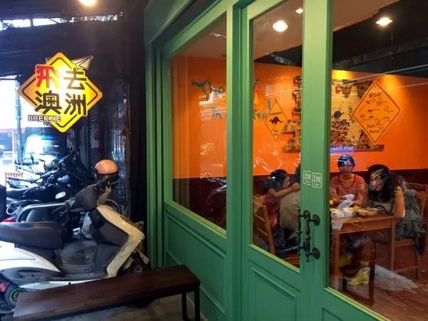 輕盈寶寶發現家裡附近開了一間很厲害的早午餐 飛去澳洲 Brekkie 早午餐 大年初五 2 / 1 已經開始營業了 店門口的裝潢好像真的來到澳洲一樣呢!! 也讓沒去過澳洲的輕盈寶寶心動了呢!! 一進門就看到袋鼠、無尾熊、聖誕樹、小車車 真的超可愛的!!!! 哇...客滿囉!!! 飛去澳洲的由來.. Brekkie 發音近似台語的「飛去」 就這樣變成飛去澳洲 Brekkie 早午餐 另一邊的畫牆.. 真的有小女孩跟很多紙飛機呢!! 因為老闆曾去過澳洲遊學、打工 這裡有很多資源以及老闆的收藏 有相關問題也可以請教老闆喲!! 洗手間的佈置也很 sweet 有香香的擴香瓶、乾燥花 還有老闆滿滿的澳洲回憶 點餐方式:畫好之後到櫃檯點餐 櫃檯也有可愛的袋鼠喲!! 櫃檯上衝浪板的畫很美耶!! 有鯊魚、沙灘、有比基尼辣妹在衝浪 還有 wifi 密碼:22562300 座位都有附插座可以充電 充電還能順便做愛心喲!! 讓我們一起為愛充電 靠窗延伸過來是高腳椅的座位 靠牆是整排沙發的座位 眼尖的你..有沒有看到 sweet 的畫面 有個女孩戴著手套在餵男孩吃漢堡 花生醬牛肉堡 有生菜、酸黃瓜、蕃茄、紫洋蔥..還有附薯條 花生醬給的非常豪邁 還吃得到上面有花生糖粉 花生醬還有完整的花生本人 輕盈寶寶問王子.. 為什麼不把蔬菜加進漢堡裡呢?! 因為想要享受整個嘴巴都是牛肉跟花生醬的滿足感 牛肉漢堡肉好厚喲!!!而且沒有太多的肥肉 而且附手套..這樣就不會吃得滿手都是呢!! 輕盈寶寶點的波士頓龍蝦當早餐 NT 299 有香蒜麵包、薯格格、滑嫩炒蛋 還有蔬菜沙拉 這一整個套餐真的超級豐富的呢!! 就連螫裡的肉都是超飽滿的 新的一年就吃這個焗烤龍蝦當早餐 迎接美好的 2017 年 上面的焗烤舖得超厚、超滿 好香好濃..看看這個牽絲 其實已經吃飽了.. 可是看到 MENU 上的巧克力西多士 又忍不住點來當餐後甜點 盤子上已經有巧克力醬、煉乳 再淋上好香甜的蜂蜜 一口咬下..吃得到吐司外層的香酥 糖霜甜甜的..裡面的巧克力醬也給得很多 但是一點也不會覺得甜膩 只有滿滿的幸福感 只差沒把盤子拿起來舔了!! 好不容易等到這一區的客人離開 才能拍到這樣的空景 旅遊地圖上都是幸福的回憶呢!! 在板橋就能吃到這麼幸福的早午餐耶!! 輕盈寶寶推薦給大家喲!!! …查看更多