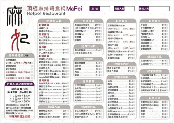 麻妃麻辣鍋 (新北/基隆) 網址: https://s.openrice.com/cHRSmG29Wm200 地址: 新北/基隆三重區重安街11號 電話: +886 0289728898