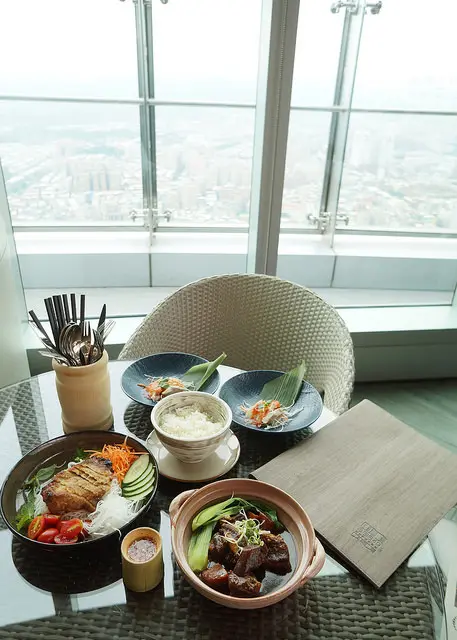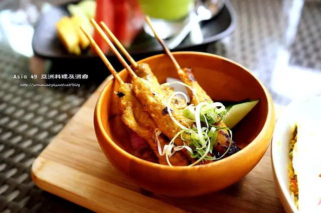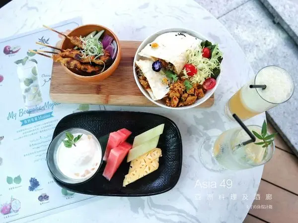 新北最高餐酒館「Asia49亞洲料理及酒廊」,以日夜變幻的無邊美景和膾炙人口的南洋佳餚,網路好評不斷。餐廳新聘印尼主廚胡英達Indra Kusuma到任,近期以改版的「商業午餐」讓來客嚐鮮,週一至五(假日除外)11:30至14:30以套餐的型態供應,售價NT$299起,一律附贈每日例湯、香蘭珍多冰、以及小菜吃到飽。新主廚的廚藝高超,餐點滋味相當美味!另外還有午茶調酒放題,恣意享受微醺午后時光。新北最高餐酒館-Asia49亞洲料理及酒廊Asia49亞洲料理及酒廊位於板橋大遠百隔壁的百揚大樓(Mega Tower),是目前新北第一高樓,其最高的48~50層正是「Mega 50餐飲及宴會」所在之處。這天艾方妮與友人搭乘捷運抵達板橋站,並依照指標利用地下通道,就可通往大遠百,並在一樓接往百揚大樓。整個路程都不會曬到太陽或是怕遇到下大雨。(上圖取自官方網站)抵達百揚大樓一樓櫃檯,接著就可以搭乘一旁專用電梯抵達。板橋餐廳推薦 Asia49亞洲料理及酒廊Asia49亞洲料理及酒廊室內空間魅力十足,戶外露天花園美景璀璨,擁有得天獨厚的360度全景觀視野,雙北美景一覽無遺,被譽為新北第一景觀餐廳。高空花園的呈現,加上兩層樓的玻璃圍幕,更顯時尚華麗!一度還以為自己到了國外的渡假飯店。我們非常喜愛這一區有著南洋氣息的座位區。當手上拿著一杯酒,坐在這舒服的沙發上,眼前是炫麗的市景時,是不是會覺得人生不是就該如此嗎?若喜歡我的文字及照片,請給我一個支持,歡迎按讚或追蹤,謝謝!FB:ifunny艾方妮的遊樂場IG:ifunny.blog/Tit Tok:愛吃愛玩的艾方妮窗邊的座位都享有大視町野的窗景及光線。特別設置的浪漫座位還有生日派對的需求,都可以事先提出規劃,難忘的用餐體驗,在此很容易就可以實現。Asia49亞洲料理及酒廊是遠東集團委由香格里拉台北遠東飯店經營的館外餐廳,主要提供南洋美食與新潮調酒。近期推出新主廚的商業午餐,在午餐時間坐無虛席。店名中有酒廊,因此酒吧相形重要。這個以金箔壁面裝飾的中島吧檯加上天花板的圓弧設計及燈光的配置,造就出一個炫麗奪目的大酒吧!座位區有古銅色鏤空屏風區隔,空間更顯活潑。利用窗邊及玻璃圍幕,居高臨下令雙北美景一覽無遺。板橋景觀餐廳 Asia49亞洲料理及酒廊設有戶外觀景區,這一區可以遠眺台北101、新光大樓及圓山飯店,一種世界就在我腳下的感覺,超讚的啊!Asia49亞洲料理及酒廊 新任主廚 胡英達Indra來自雅加達的Indra主廚今年40歲,擁有20年的豐富資歷,職涯版圖遍佈歐亞澳洲,包括雅加達君悅酒店、德國與澳洲的豪華郵輪、位於哈爾濱、馬爾地夫與桂林的地中海俱樂部(Club Med),並曾與台灣妻子於台中創業開餐廳,於Asia49履新前,他是高雄洲際酒店『好客南洋餐廳』的副主廚。主廚嫻熟西餐,又有來自香料群島–印尼的DNA,以西餐美學強化擺盤的視覺效果,讓好吃的菜餚魅力升級!這天我們嚐到主廚的廚藝,每道餐點都相當美味,味蕾完全被收服!Asia49亞洲料理及酒廊 超值商業午餐菜單商業午餐提供海鮮、肉類及素食等餐點,計有十多種,每天來也不重複。另外只要點商業午餐,就能享特價飲料一杯。以下價格均需加10%服務費。週一至週五11:30-14:30(假日無供應)Asia49新商業午餐店主菜後,會附上例湯/珍多冰/小菜吃到飽。Asia49亞洲料理及酒廊 商業午餐小菜無限供應無限供應的小菜吃到飽,主廚也會以季節食材變化陣容,誠意十足。這天我們吃到的百香果青木瓜片,清爽開胃。用餐期間,服務人員推著餐車,沿桌詢問是否續加小菜,是不是超貼心!Asia49亞洲料理及酒廊 爪哇咖哩雞佐印度風味烤餅$380這道料理先炒香融合了大蒜、咖哩葉…的綜合香料泥,便加入雞腿、檸檬葉、辣椒、香茅和椰漿…等,煮濃收汁而成,一上桌就香氣撩人鼻息。這道咖哩雞搭配的是,奶油煎香的印度烤餅。這咖哩入口略帶辣度,不會太刺激卻很誘人食慾,令人吃上一口就停不下來!雞肉入口軟嫰,加上咖哩醬汁的香滑,搭配烤餅真是絕配!Asia49亞洲料理及酒廊 爪哇黃咖哩燉牛肉附白飯 $420『古來』則是一種源自蘇門答臘、也流行在爪哇的印尼在地化咖哩,類似燉肉,是以椰漿和香料慢火烹煮肉類到極度軟綿,鮮味全在湯中,最適合搭配白飯;。這道菜的牛腩先用南薑、月桂葉烹煮去腥,才加到融合了薑黃、干蔥、檸檬葉和辣椒醬的綜合香料中,再加椰糖、椰漿、牛高湯,小火慢燉到軟嫩入味,湯色橘艷,牛肉微辣噴香,讓人胃口大開!這道牛肉咖哩並不會辣,搭配煮得超好的泰國香米,但肉美味濃,照樣成了白飯殺手!Asia49亞洲料理及酒廊 爪哇蔬菜豆腐咖哩佐印度風味烤餅$320這道屬於五辛素的素食品項,滋味濃郁,彩色繽紛相當誘人。這道以炸過的豆腐、馬鈴薯及胡蘿蔔融入香料而成的咖哩,一點都不輸葷食,香料滋味很有層次,用印度烤餅配搭或沾裹咖哩入口,也是好吃至極。Asia49亞洲料理及酒廊 印尼雞肉炒飯佐雞肉沙嗲$350印尼炒飯可說是聲名遠播,它曾在2010年美國總統歐巴馬訪問印尼時,登上國宴菜單,也曾是CNN『2017全球50大美食』的第二名,到了2018年,又被印尼旅遊部選為五大國菜之一!印尼炒飯種類千變萬化,但配料多以雞肉為主,加入以大蒜、干蔥、辣椒打碎的香料泥和靈魂調料–印尼甜醬油炒成,盛盤後會搭配沙嗲(雞、牛、羊皆可)、蝦餅、煎蛋、生菜一起食用。附上酸甜鳳梨小黃瓜佐餐,另一碟辣椒參巴醬可供拌飯。這個炒飯的水準真的很厲害,除了粒粒分明之