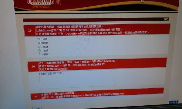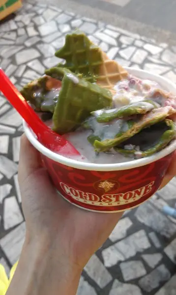 是說冰淇淋好像不應該出現在捷運上才是!!!!!!!!!但是前提是我連一口都沒有碰哦~~~~~只是一直專注的看著它慢慢的融化XD.好吧正文就是其實這杯是我特地要買回家孝敬我爸爸的呢 :D因為我早在之前就有帶我哥哥和媽媽去台北吃過可惜他剛好那天要上班所以就........ 今天回家給他一個驚喜嘿嘿而且我也想到說爸爸沒吃過Cold Stone 只吃過哈根達斯哈哈所以中午到星聚點歡唱4小,之後走去板站門市買,接著又搭捷運回海山 (怎麼好遙遠的Fu口味好多有點難選擇,又加上目前有擂茶新口味感覺也不錯!!但前提是爸爸喜歡吃香蕉所以我先篩選有香蕉的囉~~呃這樣還是要4選1 !!! 晚上還是別吃太負擔,我最後選擇「草莓香蕉圓舞曲」至於脆餅呢~~ 店員推薦我新的期間限定的「綠茶巧克力脆餅 $30」感覺還不錯阿價錢的部份大杯$220 脆餅$30 = $250但是我有用7-11 i-cash紅利點數兌換了一張買大杯($220)折$50最後是$200一杯 (看起來有奢侈到 -_________-雖然說是要帶回去孝敬爸爸的但是看那綠綠的脆餅看起來好可口當然先被我偷咬了一小口 ~~~~~~~~~~~ 綠茶的味道很濃厚,果然是選擇對了!! 對於冰淇淋的部份我就沒辦法分享了因為我沒去問我爸爸XD況且我對酷聖石的冰不太有興趣阿~~因為吃多了就會覺得 太 甜 了淺嚐到是還好拉(攤手可惜待我到了海山,冰都融了 ˊˋ 我雙手都是冰阿 (吶喊!!!!!!!先到捷運站出口的OK買衛生紙那女店員人好棒!! 還指她旁邊的洗手台說那裡可以洗手不然我雙手這樣是要怎麼回家。____。如果有優良店員貼紙,我一定要貼滿她!!!!!!!!!!!!另外結帳時發了一張上網填問券的優惠活動卡還可以再兌換耶~~~ 任一SIZE冰紛套餐買一送一唷~~~問題最後…查看更多