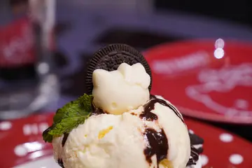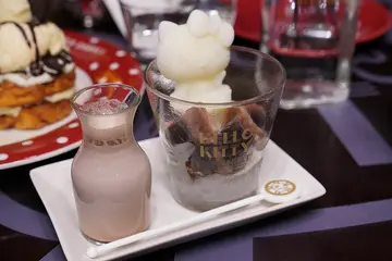 最近很喜歡往林口三井Outlet威秀看電影!順見覓食這也是必然的,少女心看到就被吸引進來了,實屬罪惡的「」開車來的朋友,如果您運氣好的話將車子停在三樓,威秀入口處一進來就看到了!威秀與台灣三麗鷗攜手打造全台最新的 Hello Kitty主題餐廳Red Carpet重現好萊塢當時的復古風。一踏進來我還以為都沒人,說實在有點怯步。上了二樓世界完全不同,人潮滿滿!清一色幾乎都是女孩兒!被這可愛的貓咪完全給吸引過來了。我們的沙發座椅!太幸運。我想還沒點餐的當下,一定一堆人瘋狂的來這裡合照!果不其然,餐都還沒點人都跑了(笑整體就是將風格呈現為電影院的設計,然而Hello Kitty變成了好萊塢大明星,好可愛好迷人。燻腸起司烘蛋$220前菜來了!扎實的主體,淋上了蜂蜜芥末,香氣逼人!蓬鬆的內部,燻腸給的很多,此料理打頭陣,我覺得可以。黑松露醬蛋黃起司深盤披薩$420披薩好厚!這是我看到第一眼的結論了,與其說披薩我認為也可以稱之為鹹派。拿起來已經感受到深沉的重量,再起私底下可藏了大量菇類、以及各形各色的配料,當然不可或缺的黑松露,可在尾巴嶄露頭角!每一口都如此精采絕倫!與義大利麵有著絕大差異(笑經典起士肉醬義大利直麵$320你看這盤子上有Hello Kitty 耶!到底多愛尖叫(笑份量給的不少,但就食感來說可圈可點,說不上驚,也說不上美!中規中矩,有點小失望,來自主軸的番茄醬汁酸度有點太過!不過麵條的表現恰到好。OREO歡樂餅上方放了一個香草冰淇淋緊接著接受到溫暖的氣溫緩慢的融化,間接讓這脆餅也緩緩便軟在這中間可夾了奶油、卡士達醬,雖然熱量逼人,但還是無法自拔!層次豐富,沁涼爽口!脆餅不時地跑出來趣味的逗一下,在一口冰淇淋,很繽紛。可可冰磚歐蕾$220可可冰磚以及Hello Kitty 造型的牛奶冰磚,再將溫熱的巧克力牛奶倒入,將其融化,就變成了Hello Kitty 再泡澡的模樣,話說花點小時間攪拌攪拌,沁涼的巧克力牛奶就誕生囉,意外的是香濃,又順口好喝。蜂蜜檸檬泡泡 $190對了!上面的攪拌棒是可以帶回家的。其實就是檸檬汽水的概念,蜂蜜味不鮮明,反倒是我倆認為有點太酸了。主題餐廳,我想也就不要太挑剔了。身為凱蒂貓粉絲的你,朝聖了嗎?…查看更多
