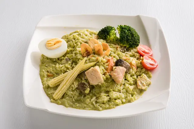 茄汁紅酒牛肉飯 / 翡翠鮭魚燉飯 / 新鮮現打果汁、精品黑咖啡 / 花生燻牛肉可頌 / 法國麵包切片抹醬