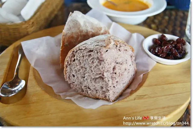 可撕取麵包沾著以酒釀製的葡萄乾一起吃,特別的滋味連平常不太喜歡葡萄乾的我也異常的添加了好幾次。