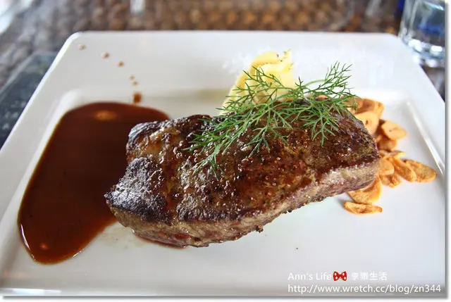 這牛排中段油花頗多,而且肉不易切斷,原以為是太韌偏偏嘗起來又不覺得老,