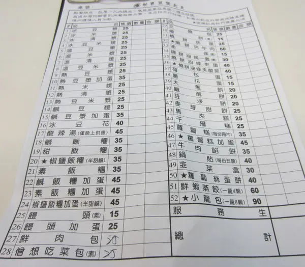 世界豆漿大王的餐點種類繁多,非常好點喔