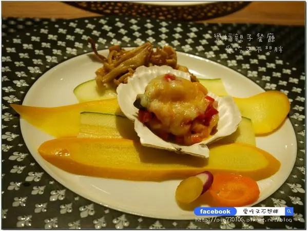 開胃菜則是焗烤扇貝,中間的焗烤扇貝是重點,但旁邊的擺盤也是很大氣的漂亮!