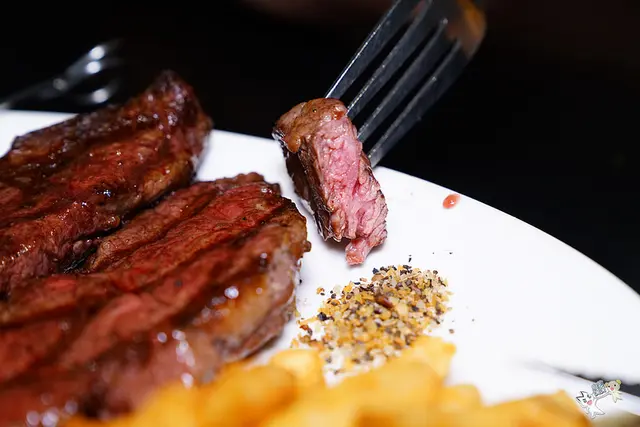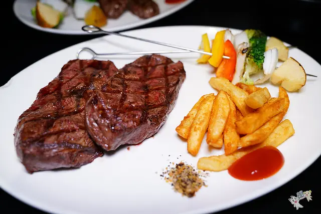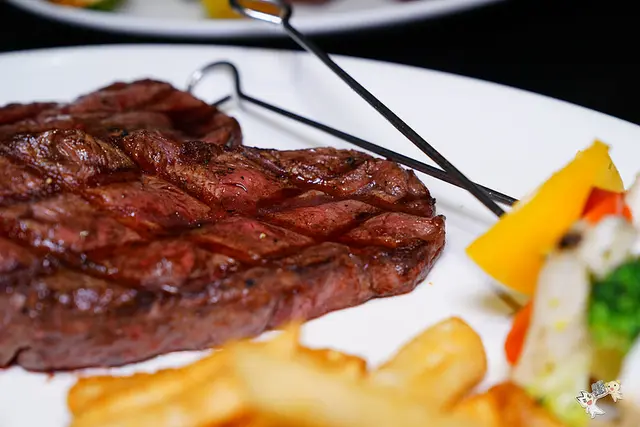 七分熟的熟度恰恰好,瓷盤有瓷盤的好處,上桌後不會再加熱導致牛排過熟