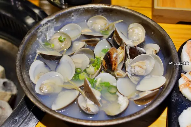 一入店就端來招待的蛤蜊鍋!哇啊~~~好大方。店家經常有優惠活動,記得常常關注金 炭火燒肉小酒館 粉絲團跟加入官方IG才不會錯過,這天招待的是熱騰騰暖呼呼的蛤蜊鍋,而且還不小鍋呢。