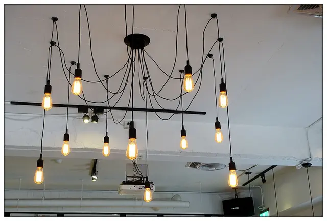 造型吊燈搭配溫潤的木質地板以及牆上的藝術掛畫