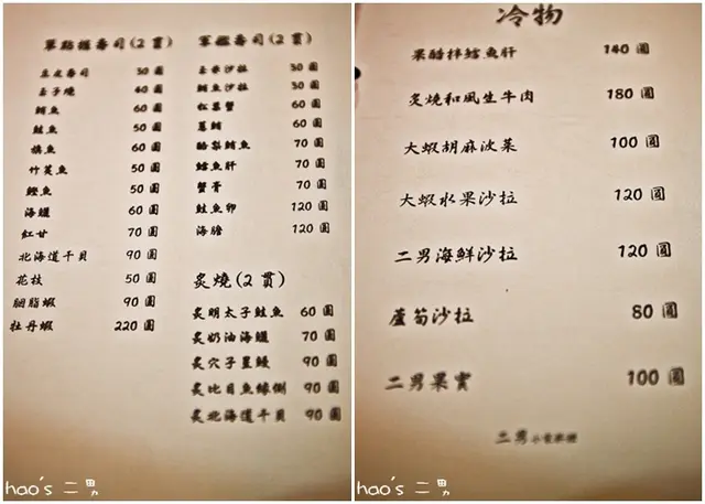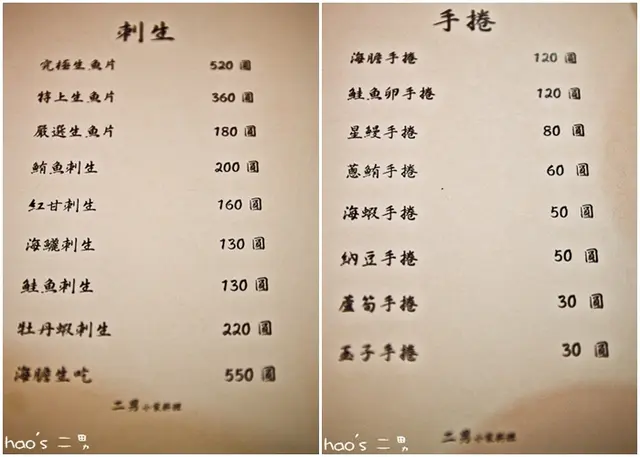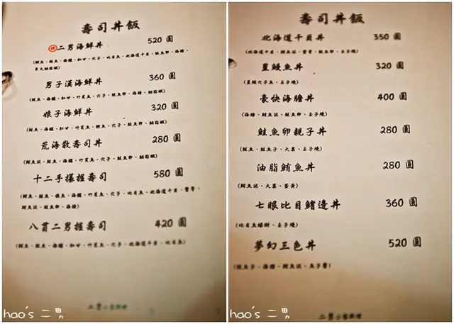 因為魚料跟菜單標示的有少許出入,所以有二款不太確定。