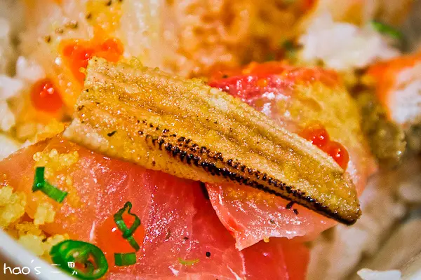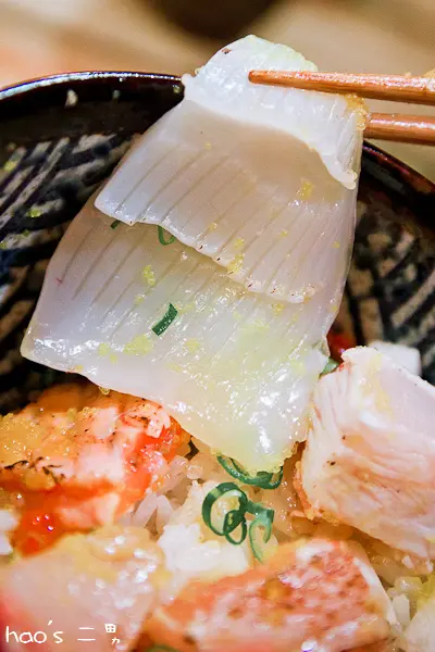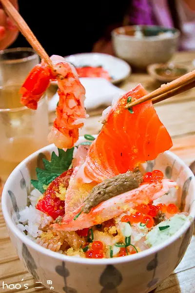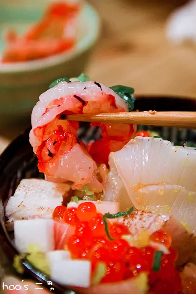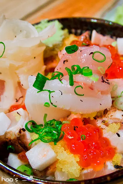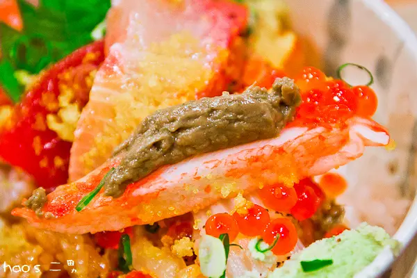 大約有四至五種魚料,去殼的胭脂蝦、軟絲、旗魚、鮭魚、鮭魚卵、蝦卵