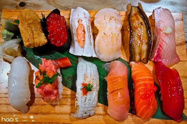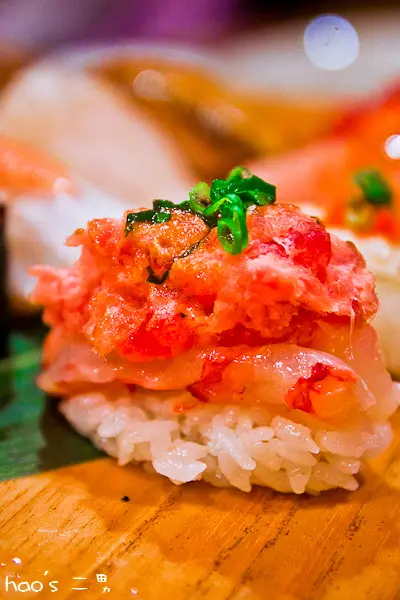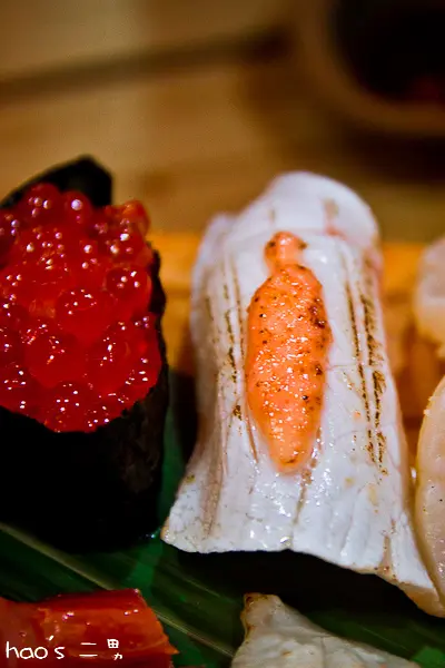 鮭魚、鮪魚、旗魚、鮭魚卵、穴子魚、蟹膏、胭脂蝦等。