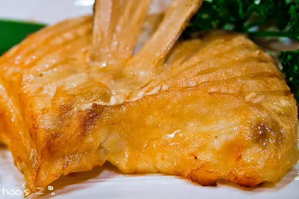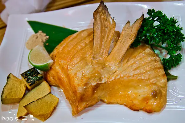 肥美富含飽滿油脂的比目魚鰭邊,略炙後逼出香氣。