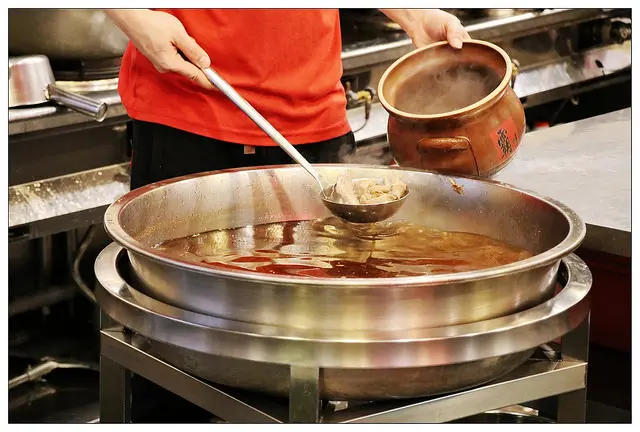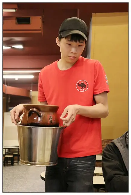 內用的點完餐之後工作人員就會幫你把薑母鴨和食材湯底裝到甕裡