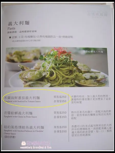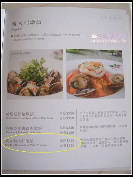 主餐只能選燉飲,義大利麵或焗烤,我們選了義大利海鮮燉飯 & 米蘭海鮮蕃茄義大利麵,套餐價格都是$350,好像跟團購也沒差多少...