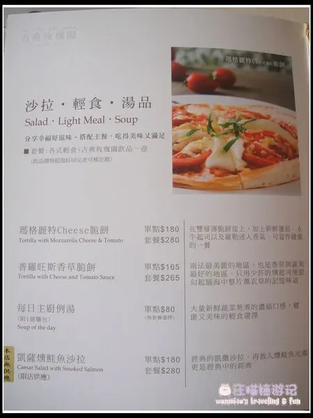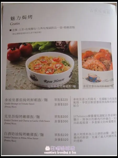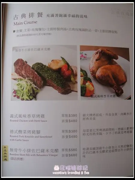 汪喵啐啐唸: 古典玫瑰園的用餐環境氣氛蠻棒的,蠻適合情侶或三五好友來此用餐聊天談心的,個人還蠻喜歡的! 但那天用餐在沒什麼人的情況下,有一桌客人帶了1個小孩外加1個小小孩來,而小孩子往往都是不受控制的... 正當樂於享受悠揚的古典音樂及眼前美好的氛圍時...三不五時傳來小baby的哭聲,還有餐具被小孩打翻的鏗鏘聲,老實說,大好的興緻都被破壞殆盡了...最後只想趕快用完餐,趕緊離開那個地方... 古典玫瑰園的服務,硬體設施...等各方面都很不錯,連洗手間都燒著香香的精油,好香好漂亮啊!是我到目前為止,用過最好最香的洗手間!(莫見笑...)唯獨餐點方面個人覺得有進步空間,如能將餐點做得更好吃,更精緻,想必一定更完美!! ※ 以上為個人消費食用後之淺見, 僅供參考!!