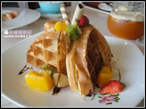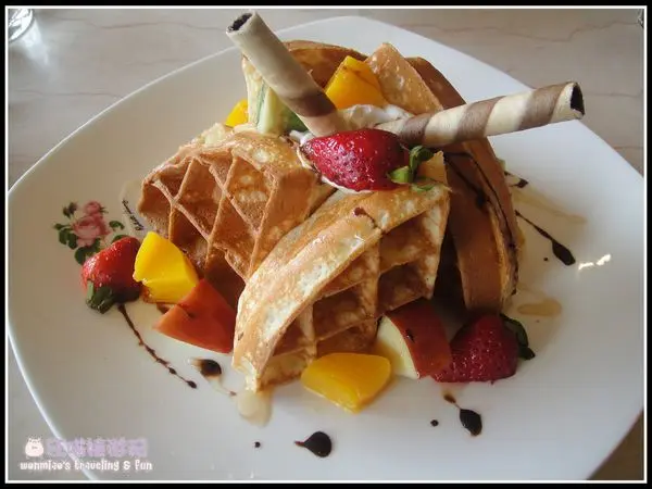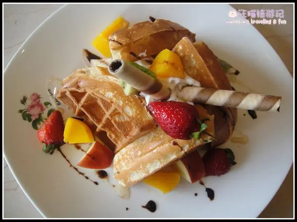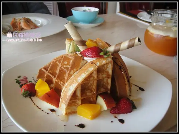 新鮮水果鬆餅,單點$180+10% 外型滿意度大於實際品嚐後的結果...水果等配料沒有什麼特殊之處,味道還ok~但鬆餅吃來有一點Q勁,不是我愛的鬆餅口感,老實說有點兒失望...