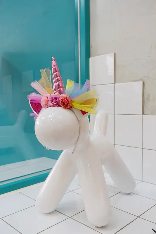 角落的獨角獸近看才發現其實是一般咖啡廳常見的裝飾小馬戴上了粉嫩的髮箍
