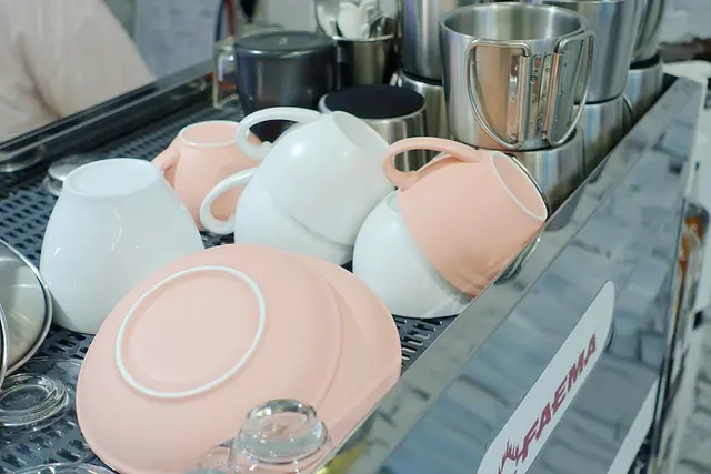 連咖啡機上的杯盤也都是讓人少女心噴發的白粉色系阿!!!XD