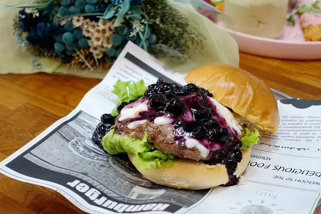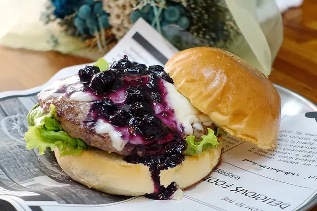 裡面的4oz牛肉排上除了新鮮藍莓果醬之外還有馬芝瑞拉起司