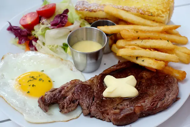沙朗牛排本身有加點鹽巴調味~特別的是上面還放上一塊奶油XD